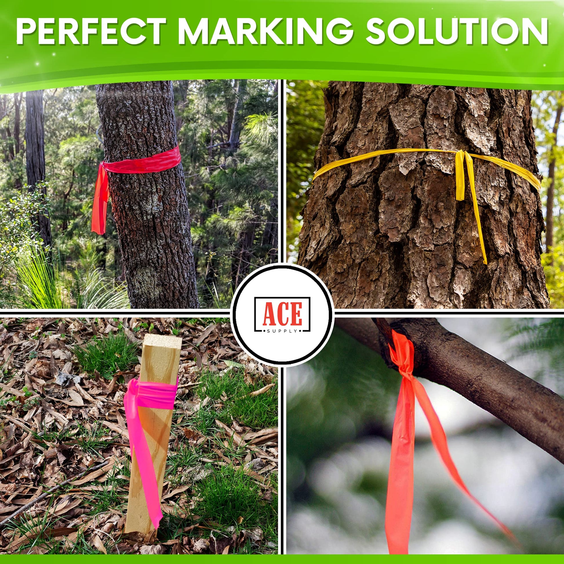 - Versatile Outdoor Tape - This tape can be used for many applications. Various uses, including marking trees, tree tape, staking tape, construction staking, trail marking tape.