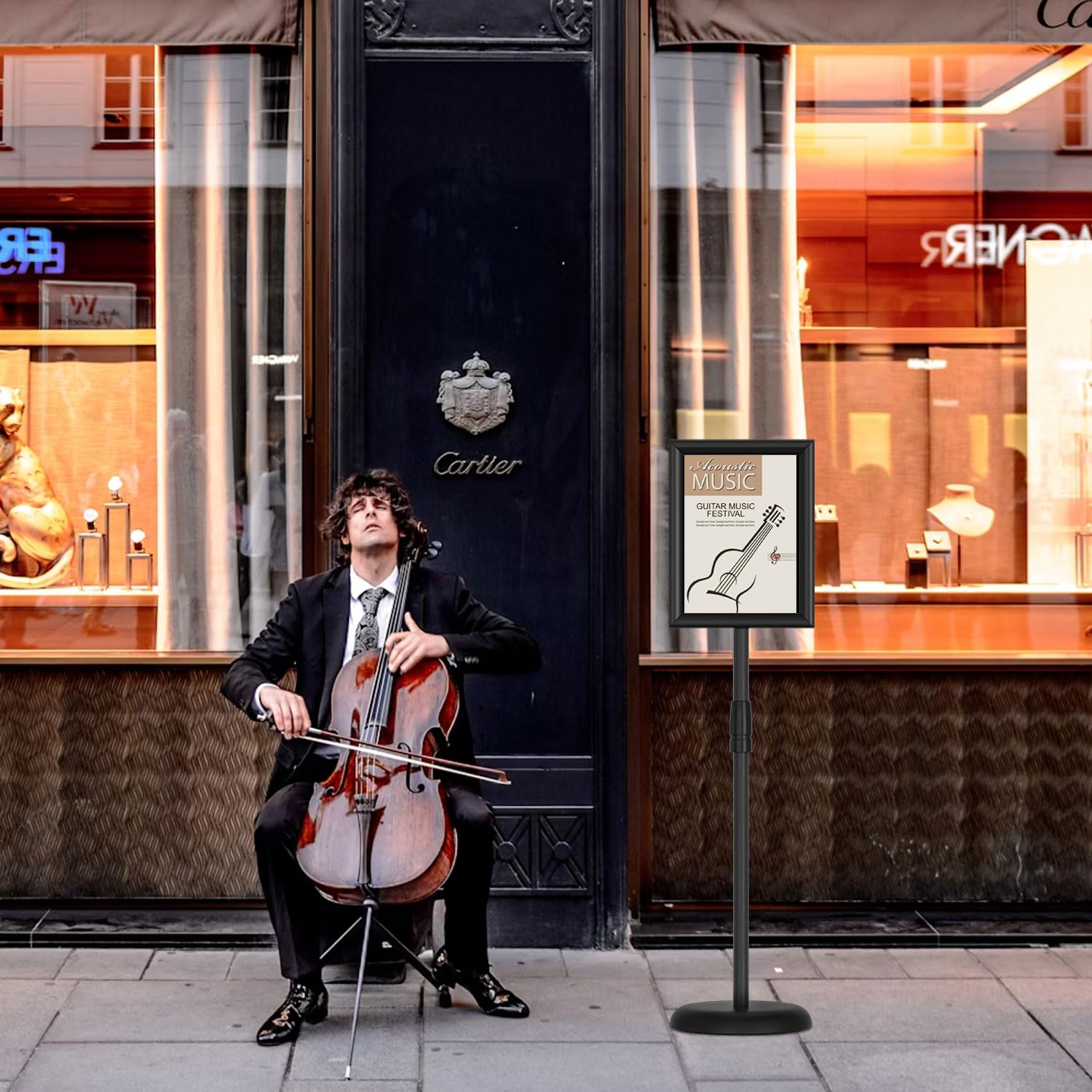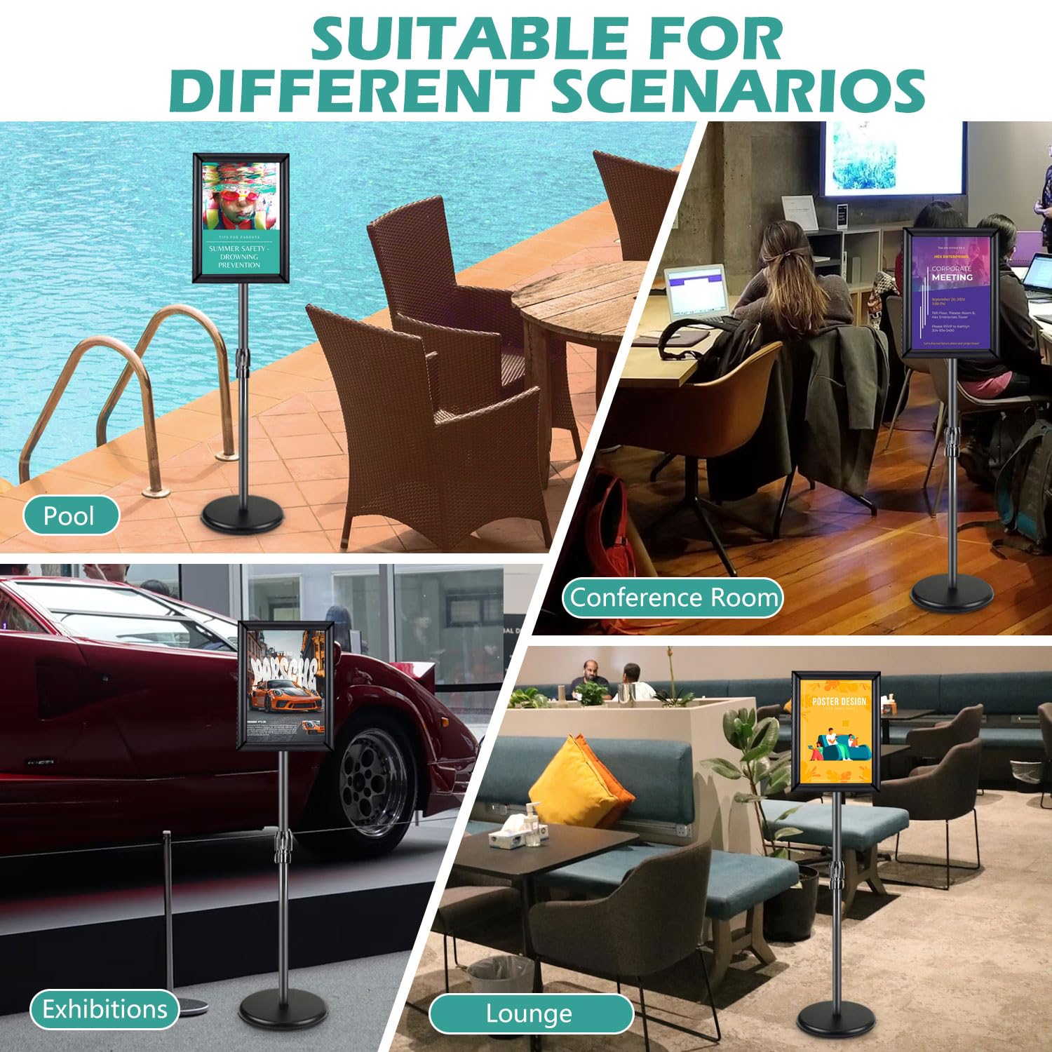 - Sign Holder Stand Heavy Duty Stable Base: The sign holder stand features a thickened base. For added stability, you can fill the base with water or sand to resist strong winds. It also includes a non-slip mat to protect floors from scratches