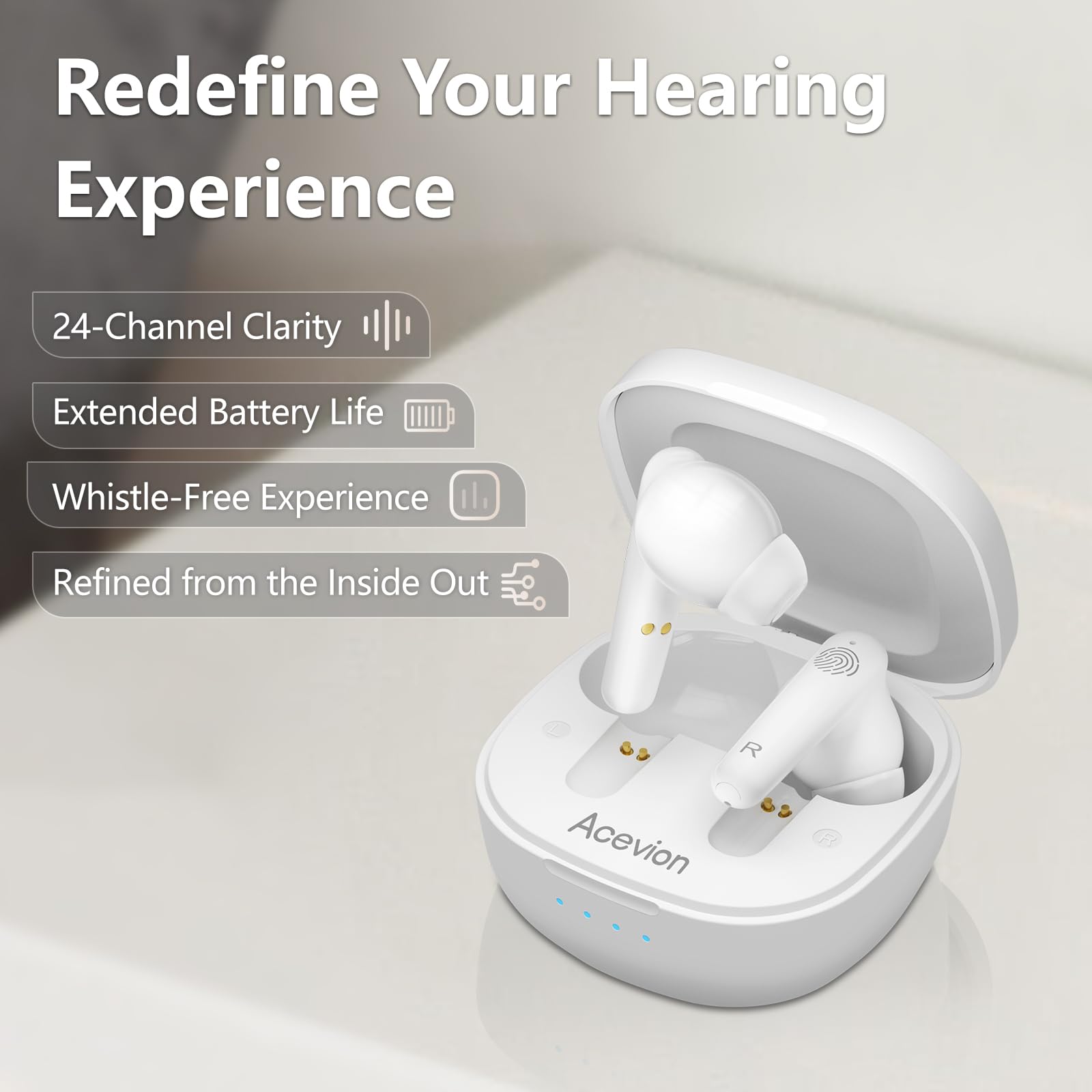 Acevion by maleous – Rechargeable OTC Hearing Aids for Seniors Fashionable | Pro-Level (Not Amplifier) | 24-Channel DSP, 90% Feedback Suppression | 100-Hr Battery | Japanese Design, Touch Control