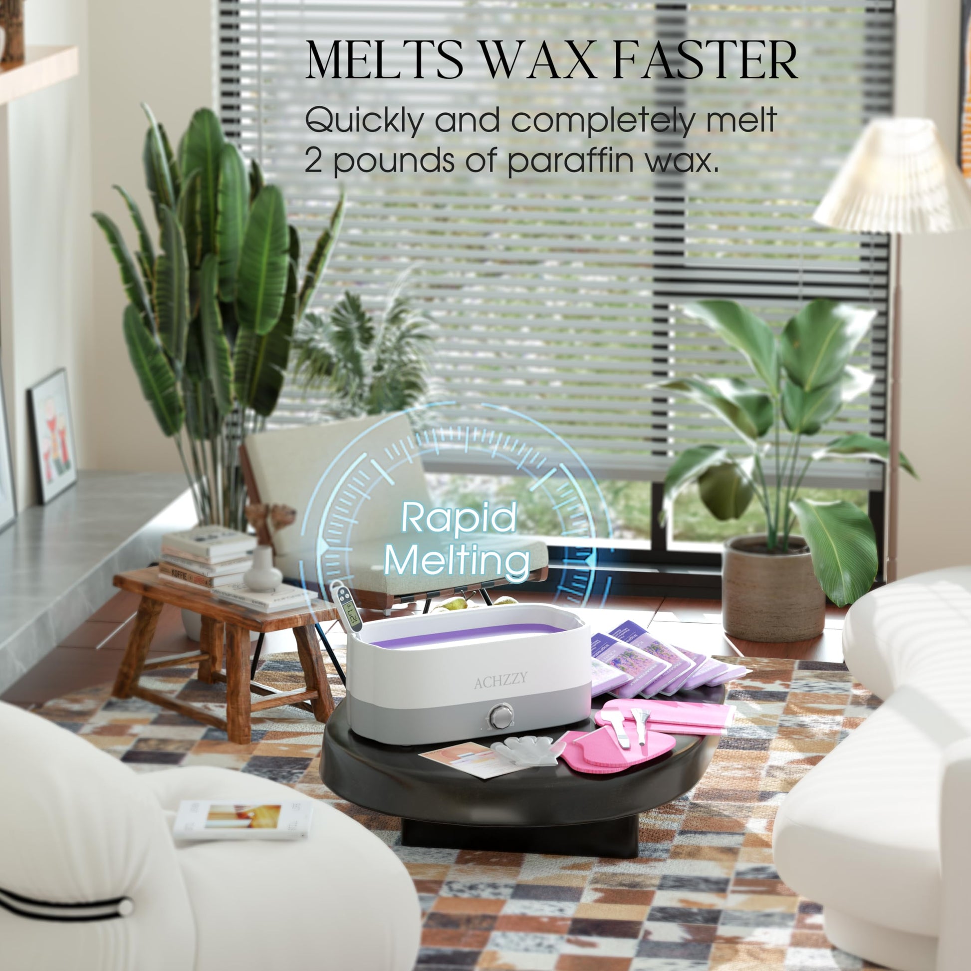 - PROFESSIONAL-GRADE PARAFFIN WAX MACHINE: The Achzzy paraffin wax machine is a professional-grade device designed to provide a spa-like experience in the comfort of your own home. Compared with other mechanical paraffin wax machines, we have upgraded and improved our technology to reduce the melting time of the wax. It should melt through 6 packets (2.7lbs) of wax in 2 hours and 30 minutes.