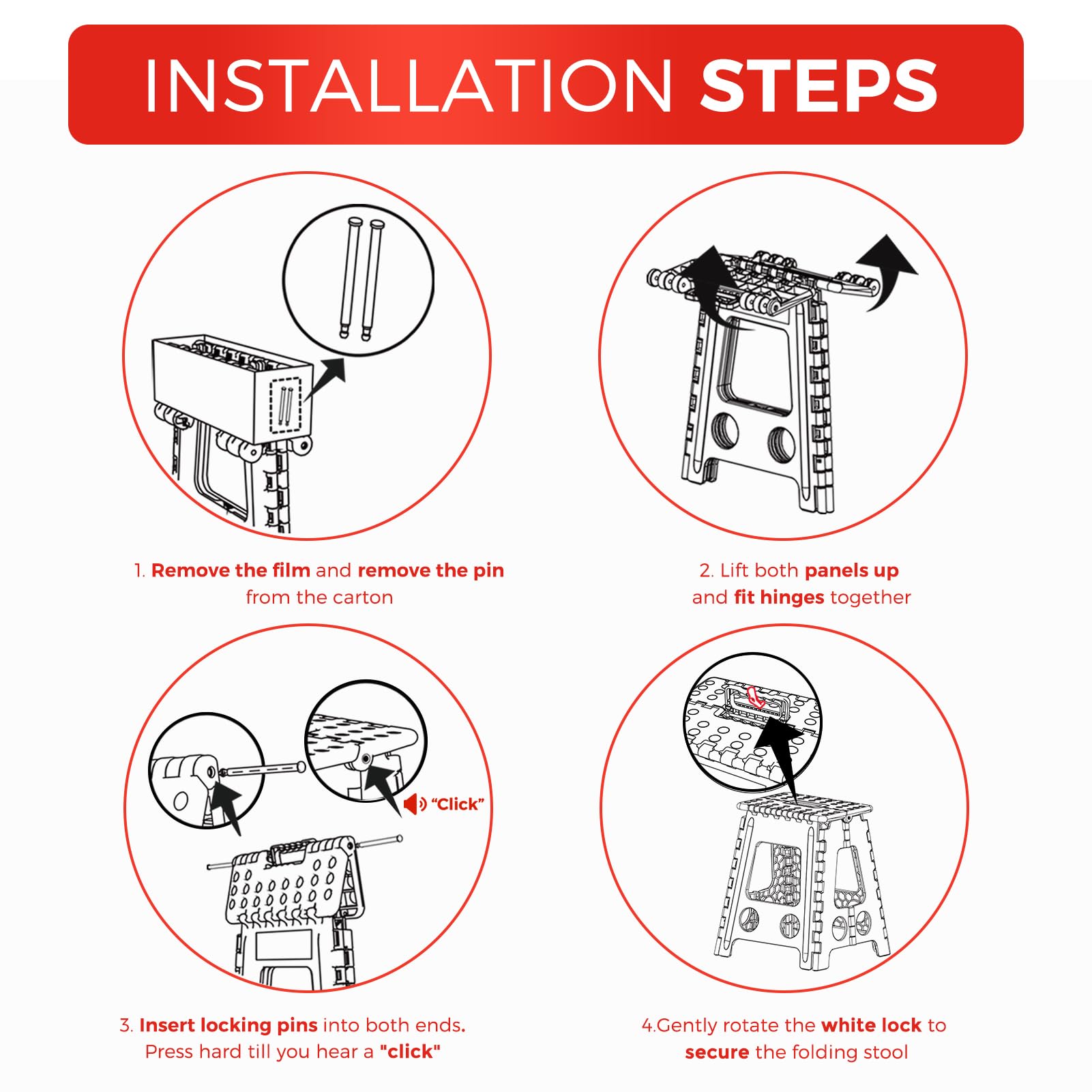- Sturdy and Reliable: Our patented step stool with a pin structure, Max holds up to 400 lbs. Reach new heights with our stepping stool design, perfect for adults and kids alike, apartment essentials.