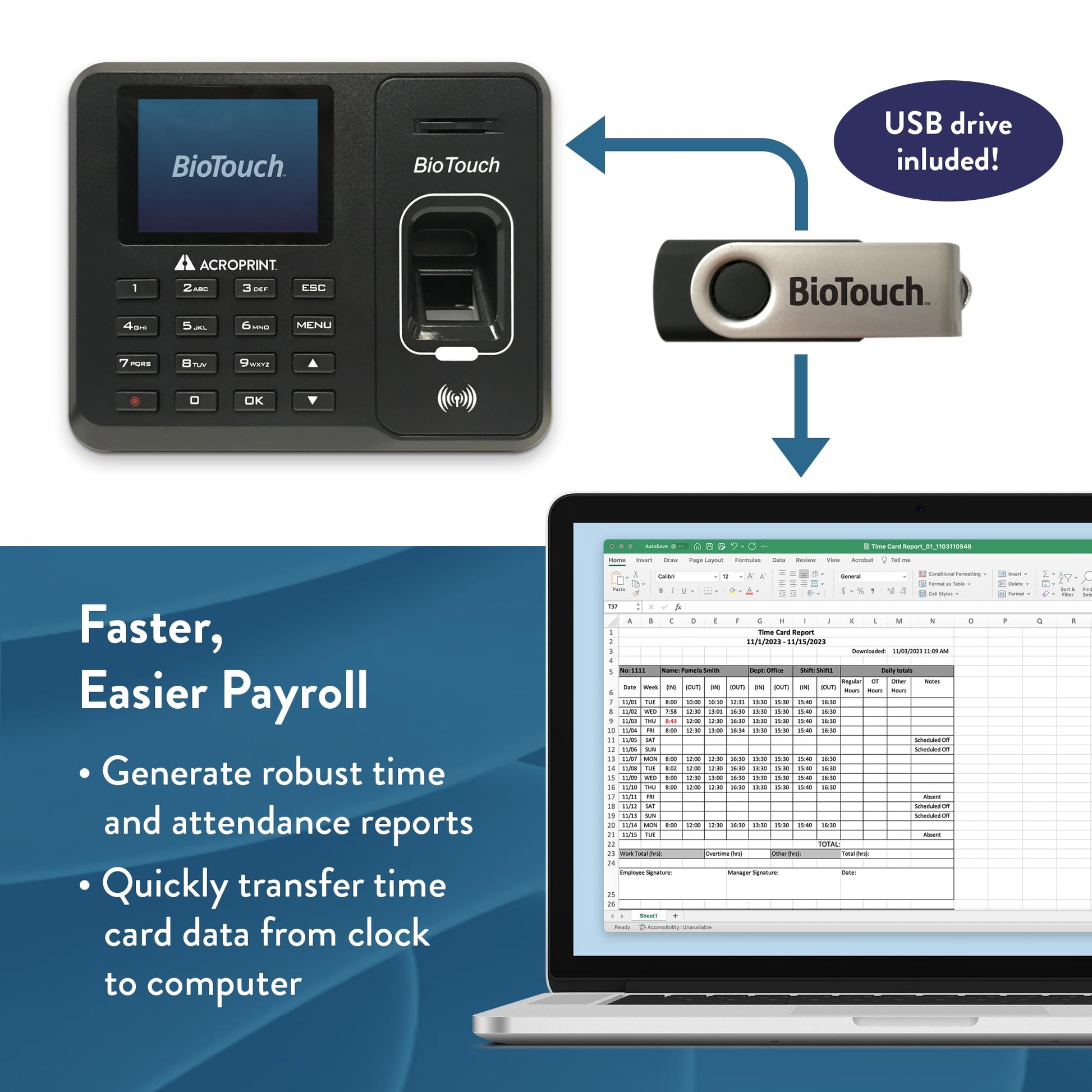 Acroprint BioTouch Self-Contained Automatic Biometric Fingerprint/Proximity Time Clock (No Monthly Fee)