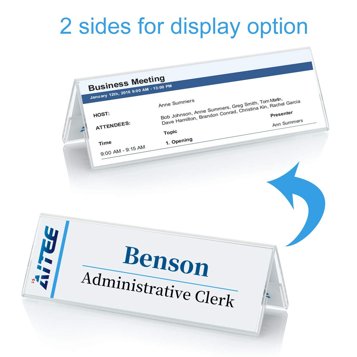 - VERSATILITY - Acrylic nameplates with double-sides load design. These nameplates for desks are easy insertion of printed paper. The tent nameplate is fit for training events, presentations, classrooms, business offices, trade shows, and much more.
