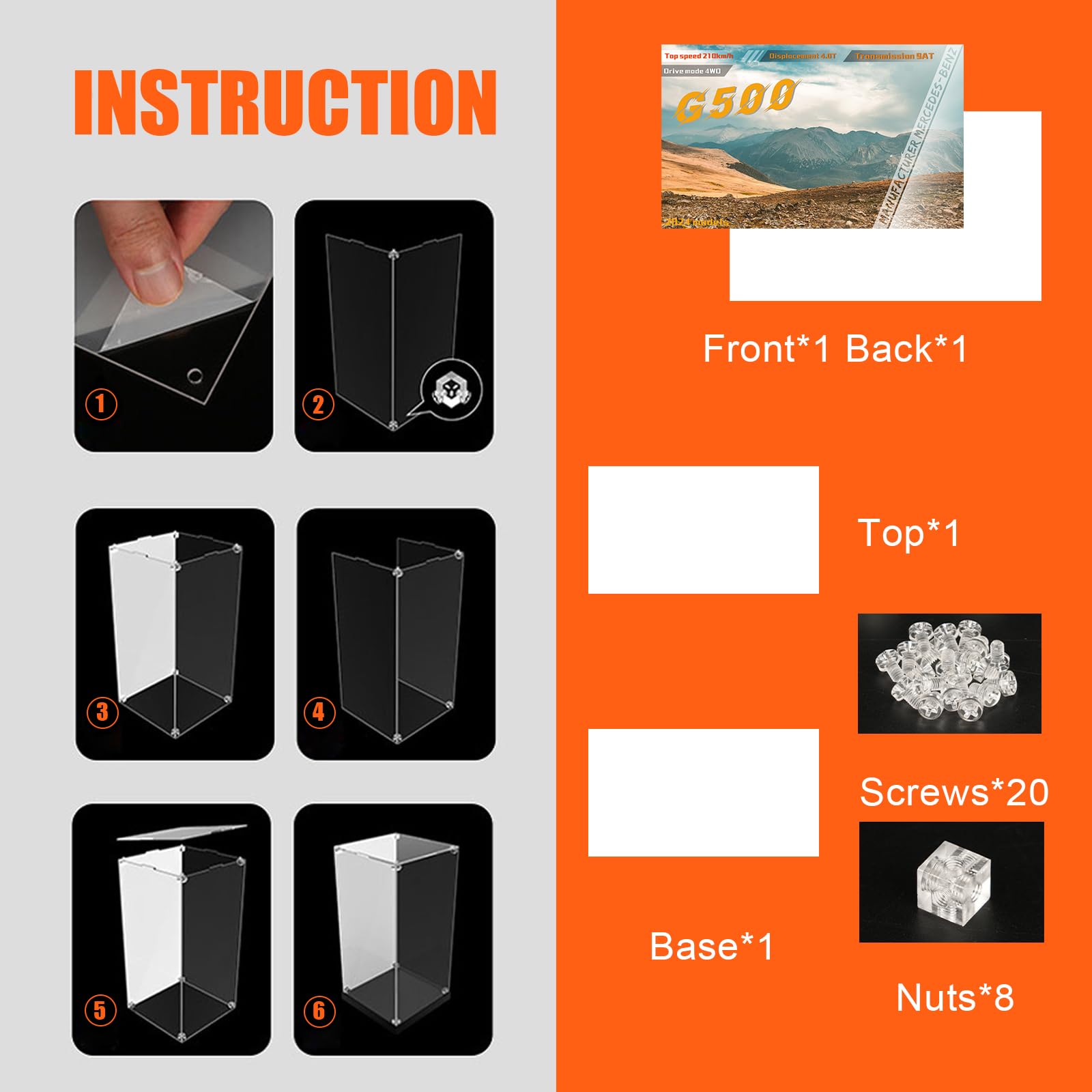 - 【Well Protection& Dust-proof】NAOCARD display case keeps your Mercedes-Benz G 500 model set dust-free, more than 98% transparent acrylic plate, so that the race car model display more clear, beautiful and durable, transparent and not yellowing.