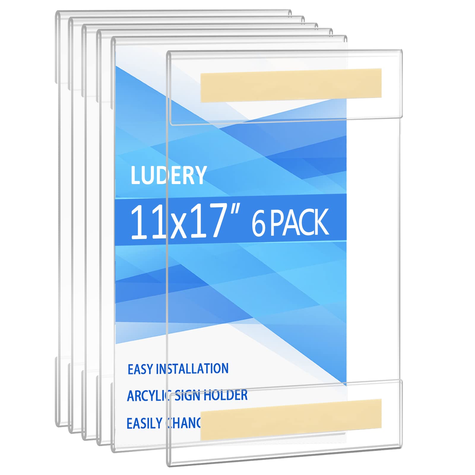 Acrylic Sign Holder 11 x 17 inches Vertical Wall Mount Sign Holders Clear Acrylic Frame with 3M Tape Adhesive Clear Poster Frames Plastic Sign Holder for Office, Home, Restaurant-No Drilling(6 Pack)