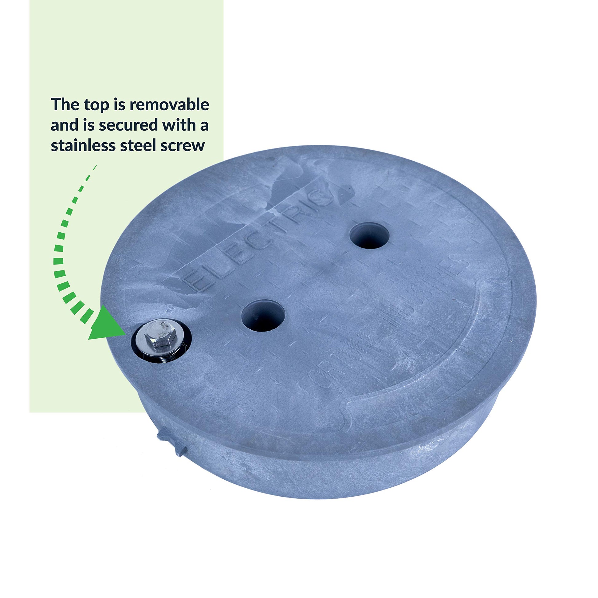 Details: Protect wire connections for electrical equipment with the 10 in. Round Electrical Splice Box. This splice box offers a durable heavy-duty PVC construction and is intended for outdoor ground applications.