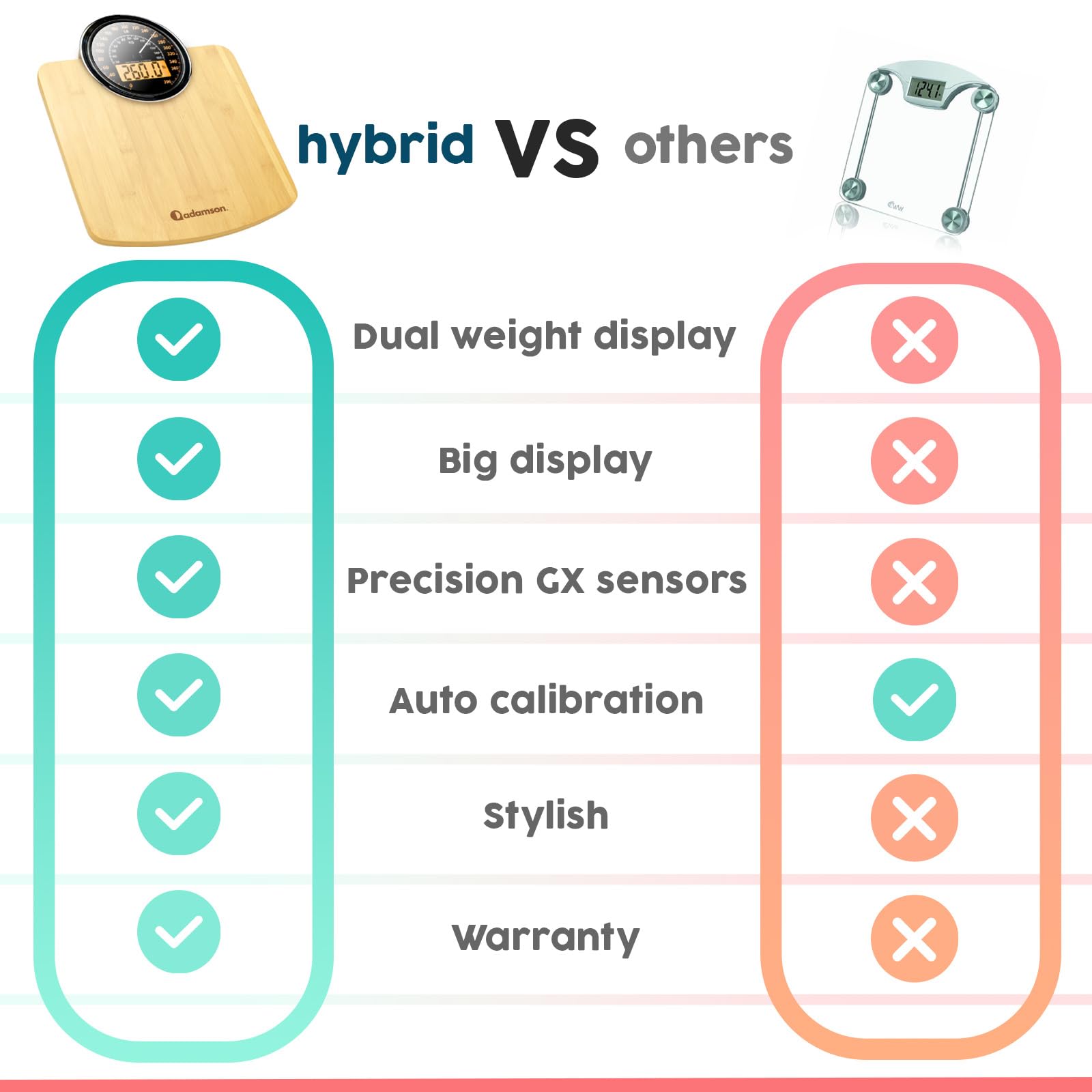 - š PRECISION AT ITS BEST: With the Adamson Hybrid, you can trust in highly accurate weight measurement up to 396 lbs / 180 kg. Equipped with advanced GX Sensors, it measures your weight with precision, displaying results in both pounds and kilograms, accurate to 0.2lbs/0.1kg.