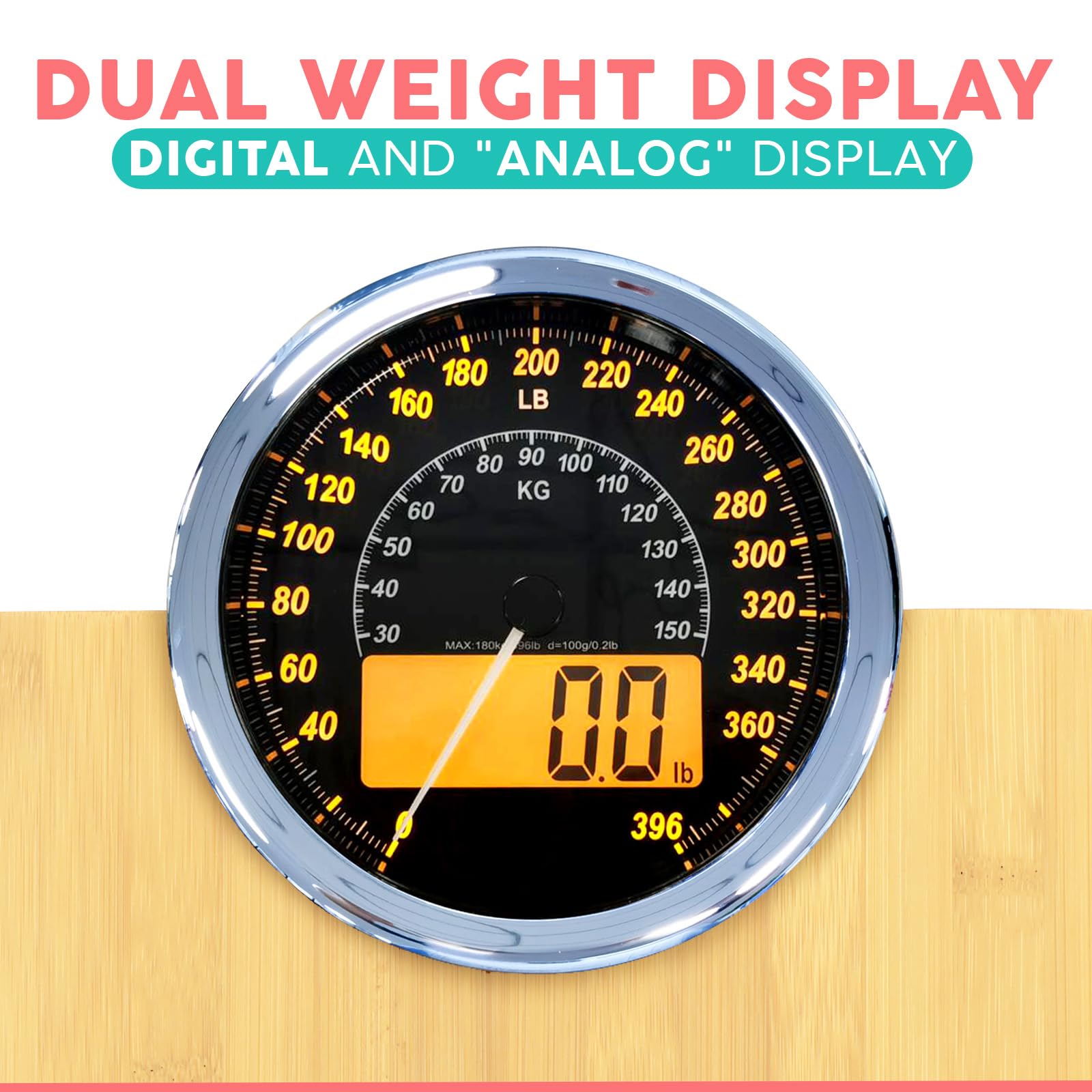 - š DUAL WEIGHT MEASUREMENT DISPLAY: Introducing the Adamson Hybrid Bathroom Scale ā the only choice of digital scales for body weight. Our innovative scale provides both digit and analog dial weight measurements, giving you the best of both worlds - digital accuracy with an analog scale experience.