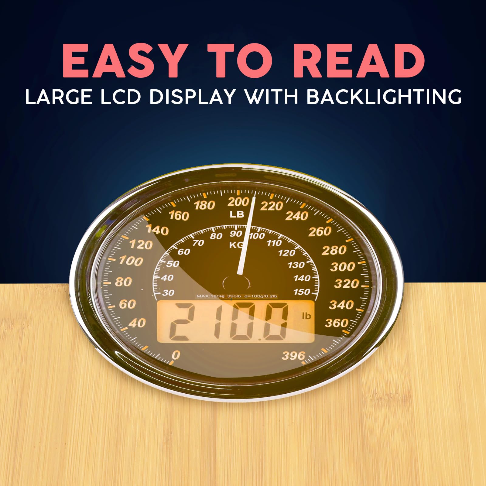 - š CLEAR AND EASY-TO-READ DISPLAY WITH BACKLIGHTING: The Adamson Hybrid Bathroom Scale focuses on providing precise weight measurements with its dual display feature, which is enhanced by a convenient backlight. Its digit and dial combination ensures that you can effortlessly check your weight with clarity and accuracy, even in low-light conditions.