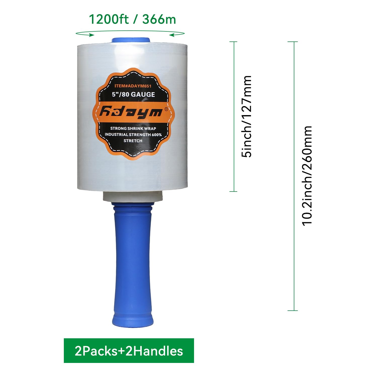 ADAYM Stretch Film Shrink Wrap Roll - 5" x 1200' - 80 Gauge 600% Stretch Self-Adhering Heavy Duty Plastic Wrap for Moving, Packing, Shipping, Furniture & Pallet Stabilization(12 Rolls)