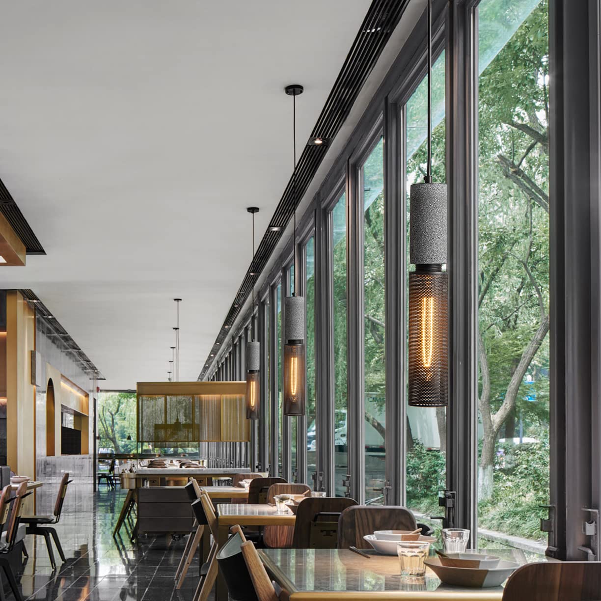 - 【Inspired Design】Concrete linear hanging pendant lights are a great stylistic addition to urban environments. The industrial modern style of black metal and grey cement design gives you a quiet beauty.