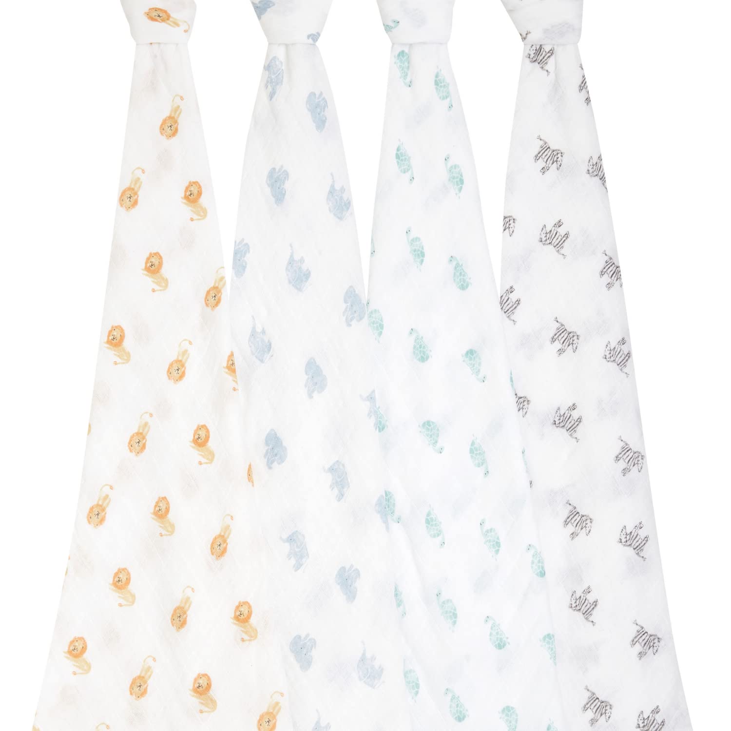 aden + anais Boutique Organic Swaddle Blanket 4-Pack – 100% Organic Cotton Muslin, Large, Soft, Breathable Receiving Blankets for Infants – Lightweight Multi-Use Baby Swaddles, Animal Kingdom