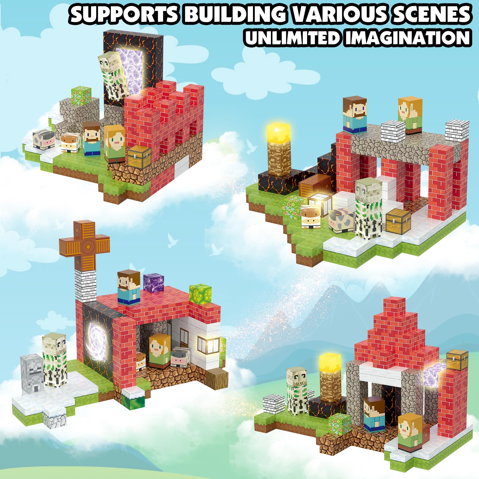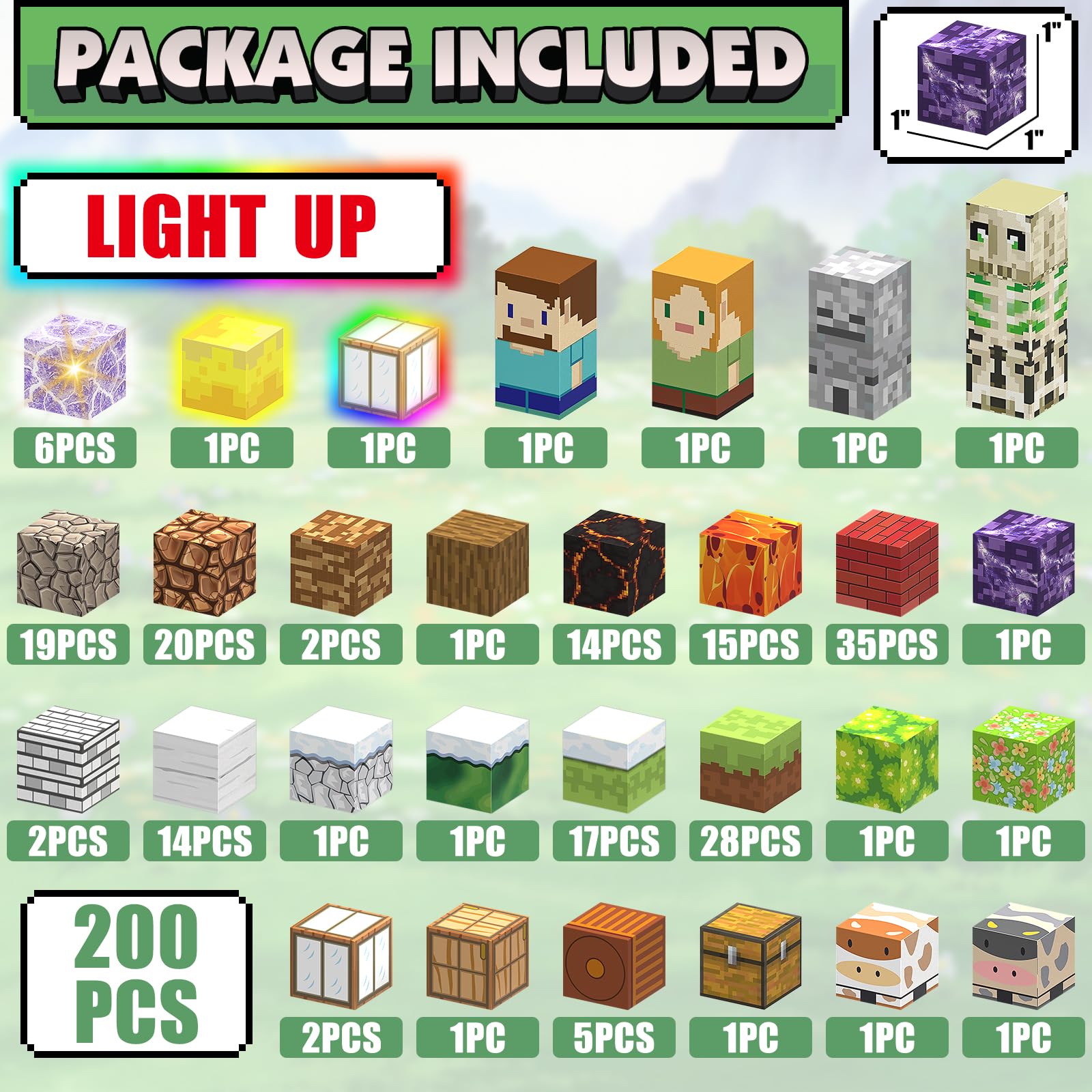 - Countless Possibilities: 200 PCS magnetic building toys sets feature a variety of patterns for kids ages 3+, 8 special blocks that light up to spark their curiosity, imagination and encouraging exploration. They offer endless creative possibilities in themed assembly. Block Size: 1x1x1 inch