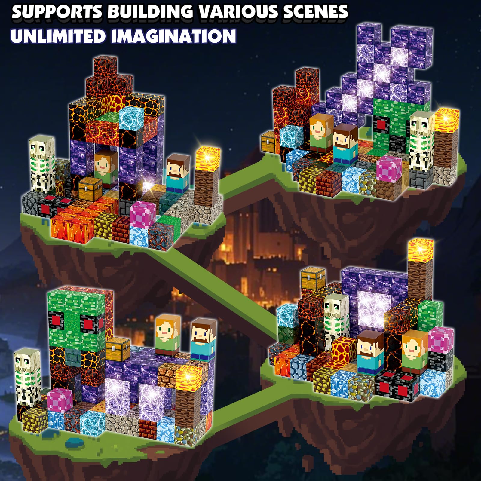 - Countless Possibilities: 100 PCS magnetic building toys sets feature a variety of patterns for kids ages 3+, 5 special blocks that light up to spark their curiosity, imagination and encouraging exploration. They offer endless creative possibilities in themed assembly. Block Size: 1x1x1 inch