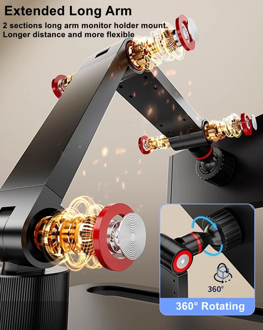- 360 Rotating Base- The monitor stand can be adjustable both horizontally and vertically, you can easy to adjust the height you need,and positioning any angle you want,the base and arm joint is 360 degree rotation.