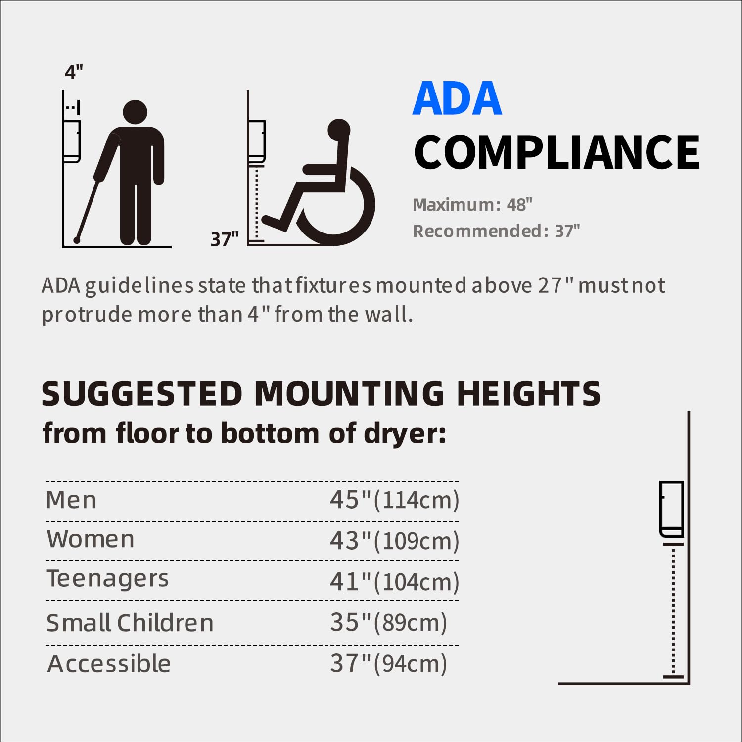 - Smart Design - Hands-free operation dries hands in less than 15 seconds.Automatically heating when room temperature in below 77℉, otherwise its heating is off.