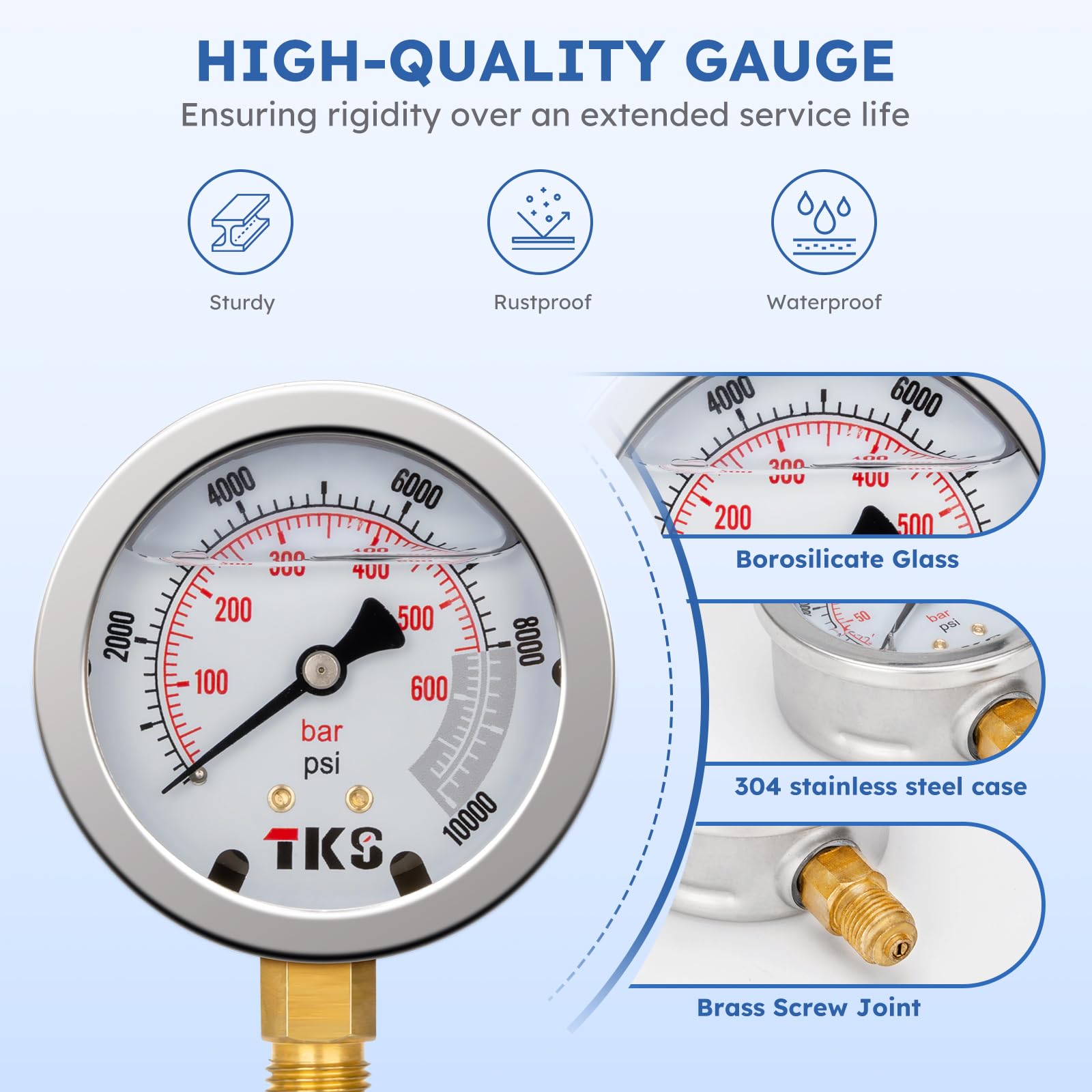 - ✔ Portable Multi-purpose Carrying Case & Durable Gauges: All the gauges are made of 304 stainless steel shell and copper screw joint, sturdy and durable for longer use lifespan. And all the gauges are filled with high purity glycerin, effectively reduce the affection of vibration and pulsation. The portable Carrying Case is made of durable plastic with multi-purpose compartment interior, it is designed with carry handle for carry on in daily use.