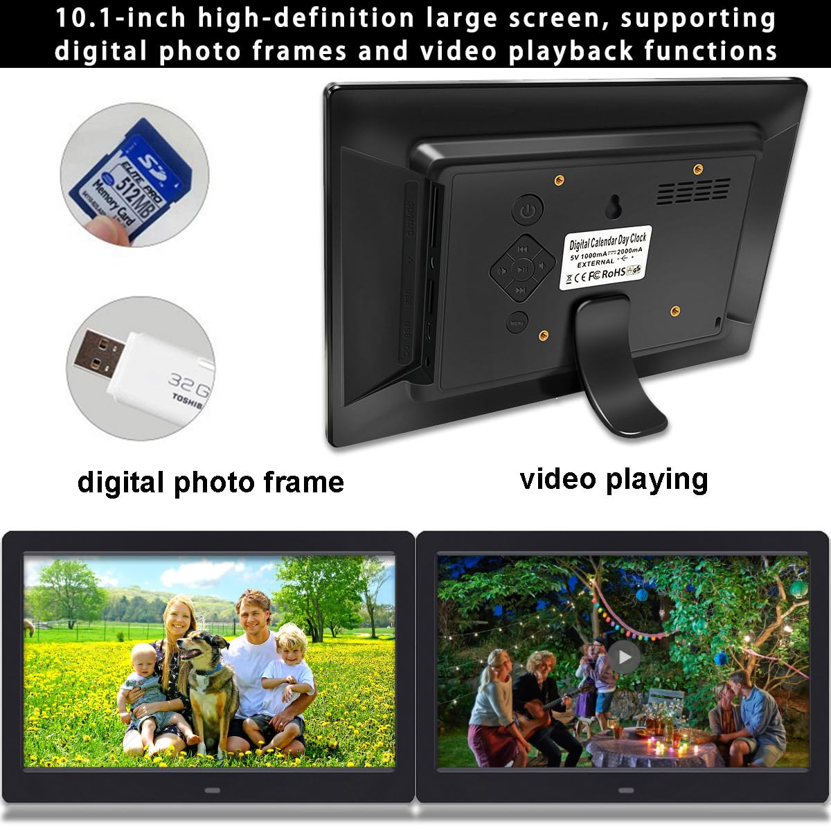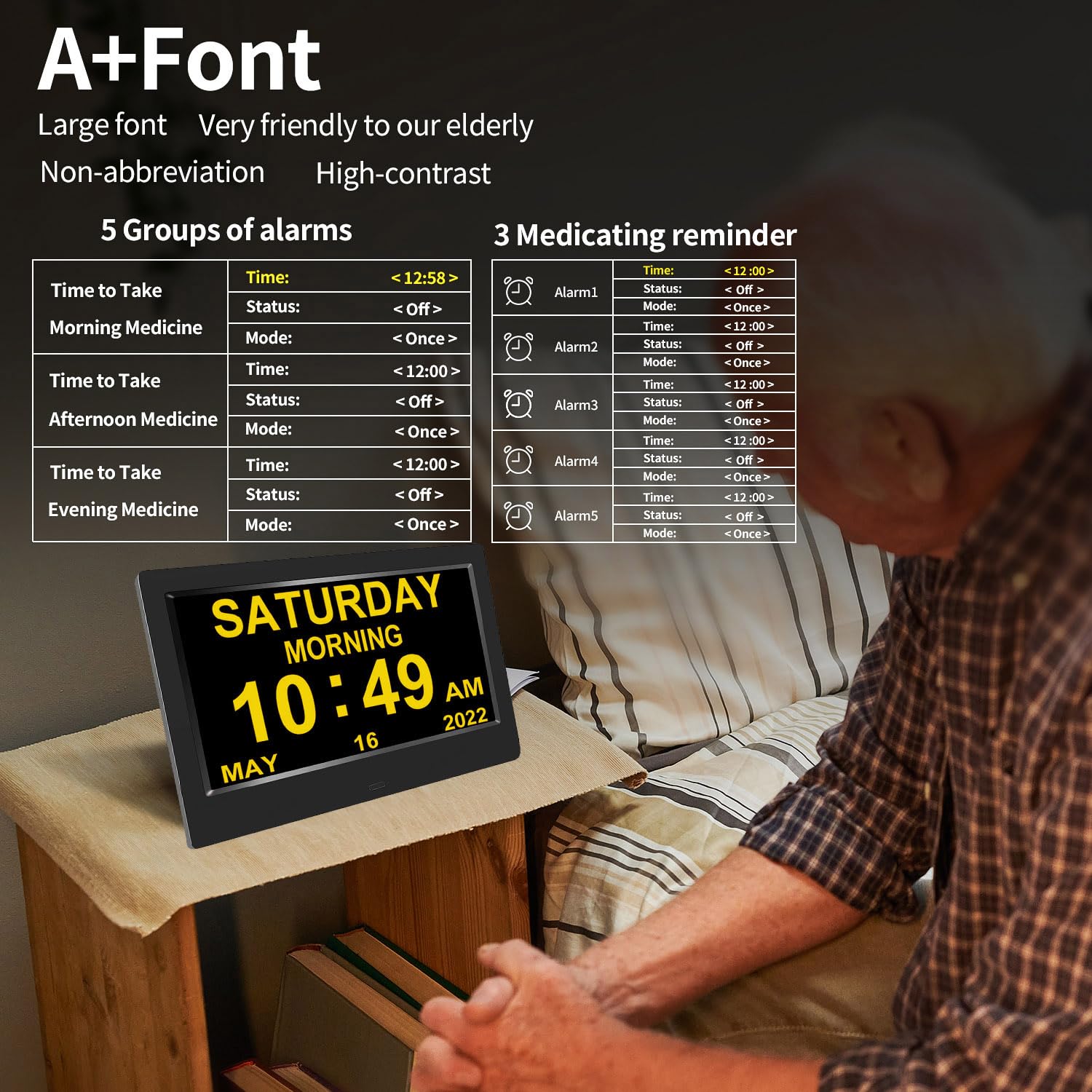 AINFTIME DST Clock with Day and Date for Elderly-3 Display Digital Calendar Alarm Day Dementia Alzheimers Clock with Extra Large Display (10.1in Black)
