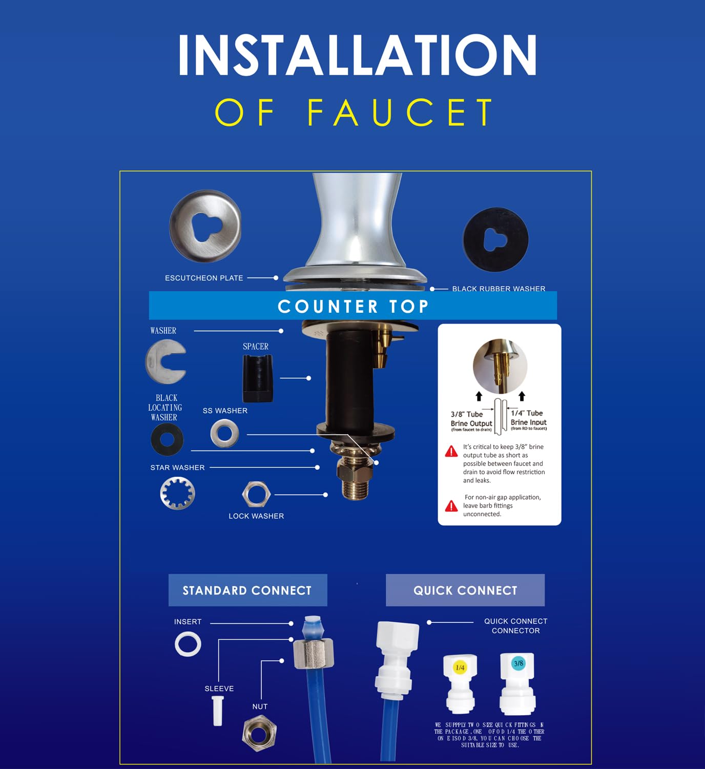 - Quick and Easy installation – Please confirm that your system is compatible before purchasing,check the installation clear , The parts package include a ¼” and 3/8” quick connect to make it easier to install it with far less effort or stress.