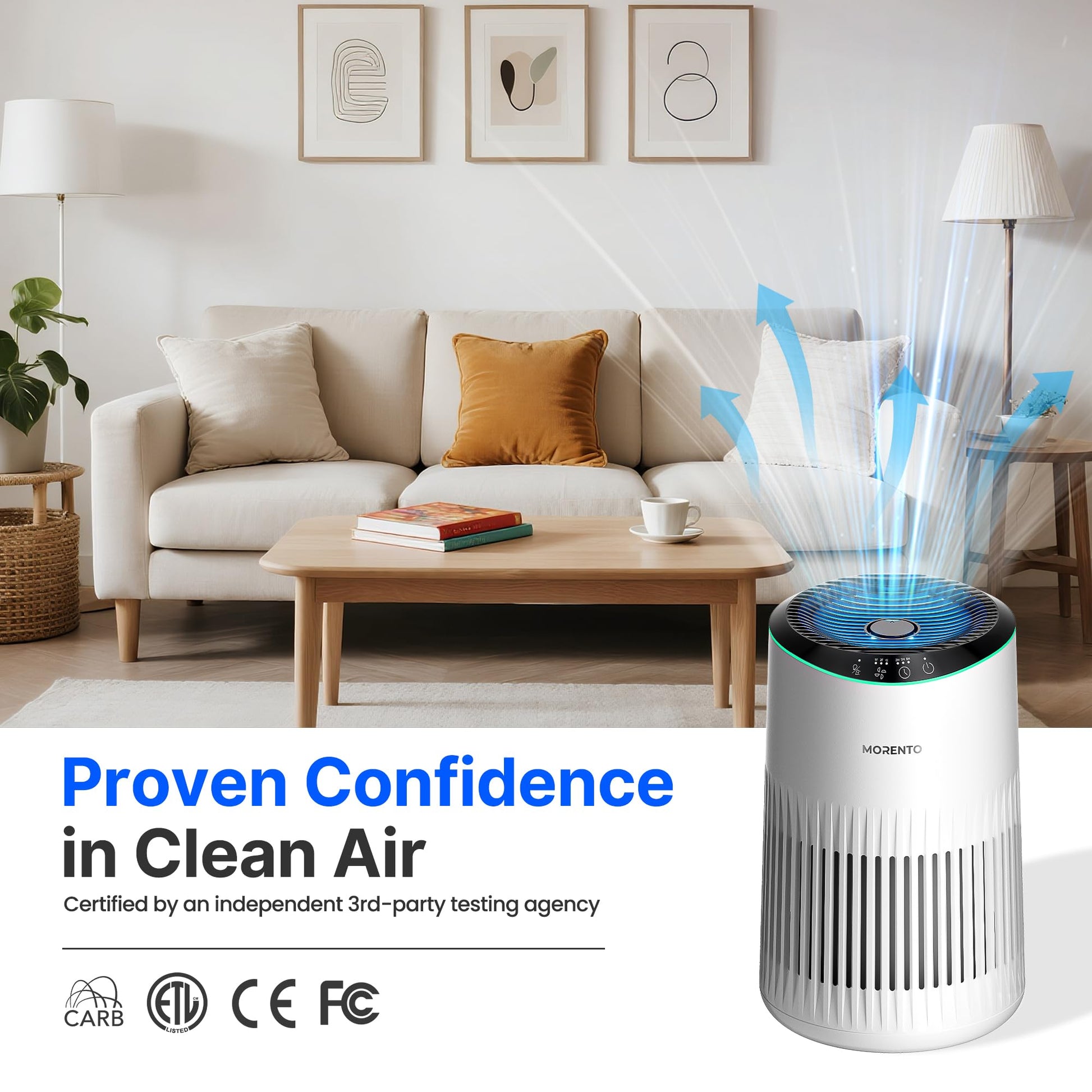 - The Ideal Gift: This compact, multi-functional air purifier is not only perfect for your own space but also makes a thoughtful present for loved ones. It’s suitable for every gifting occasion—Christmas, Thanksgiving, birthdays, or housewarmings alike. Note: The air purifiers for bedroom comes with an adapter, which is placed inside the filter compartment