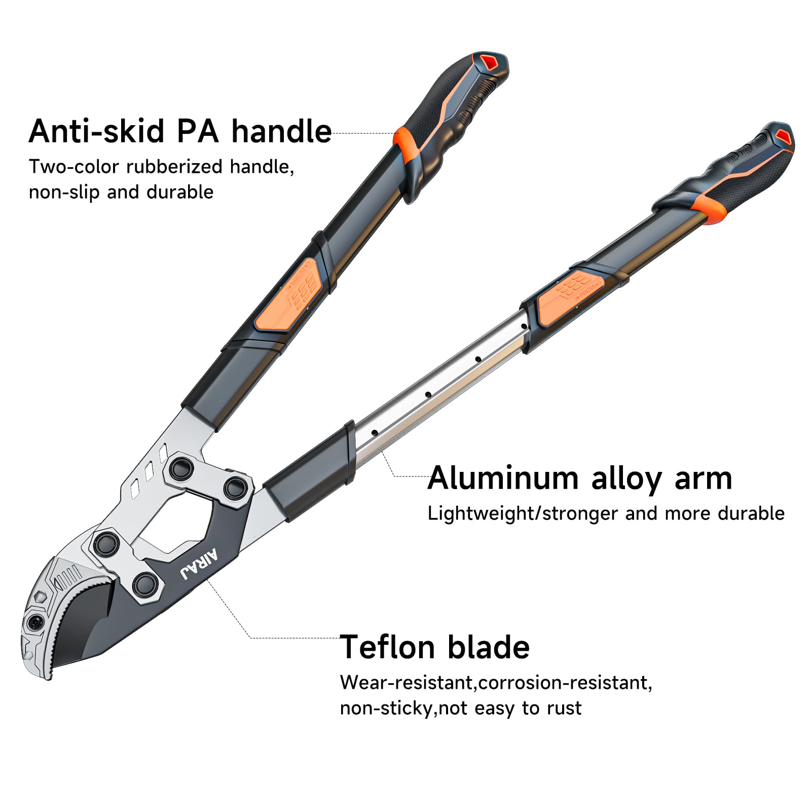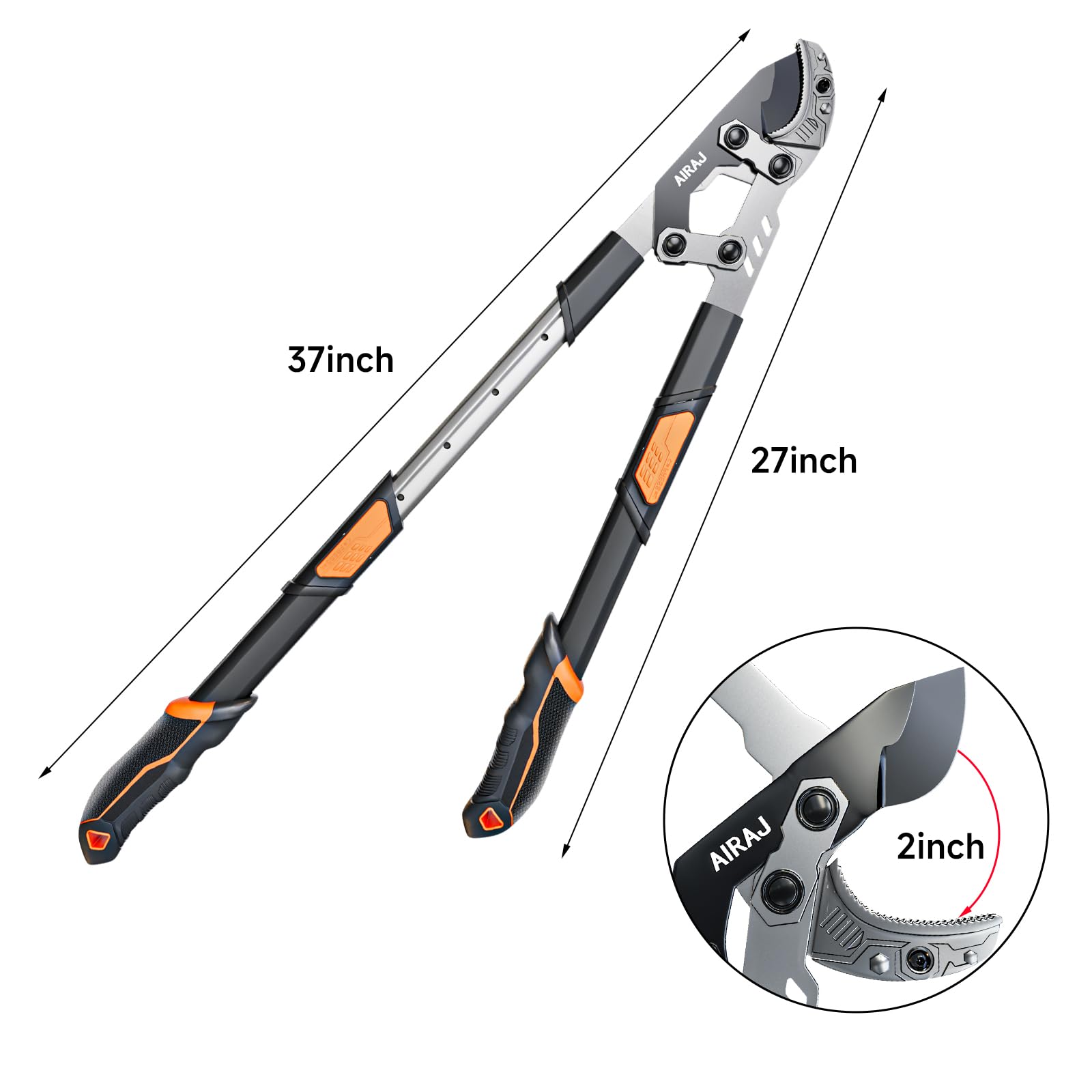 - Adjustable Aluminum Handle - Extendable Loppers: Equipped with a robust aluminum handle, the loppers can be adjusted from 27 to 37 inches, allowing you to reach high branches comfortably.