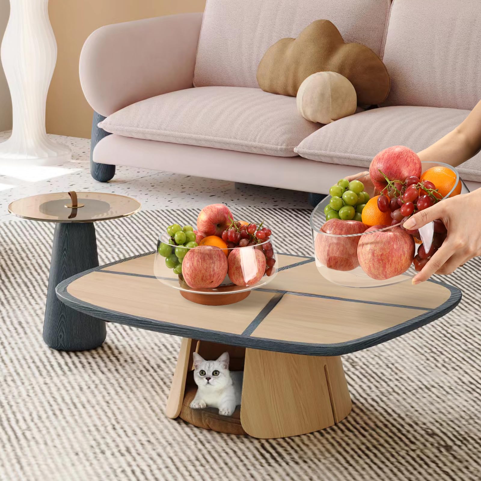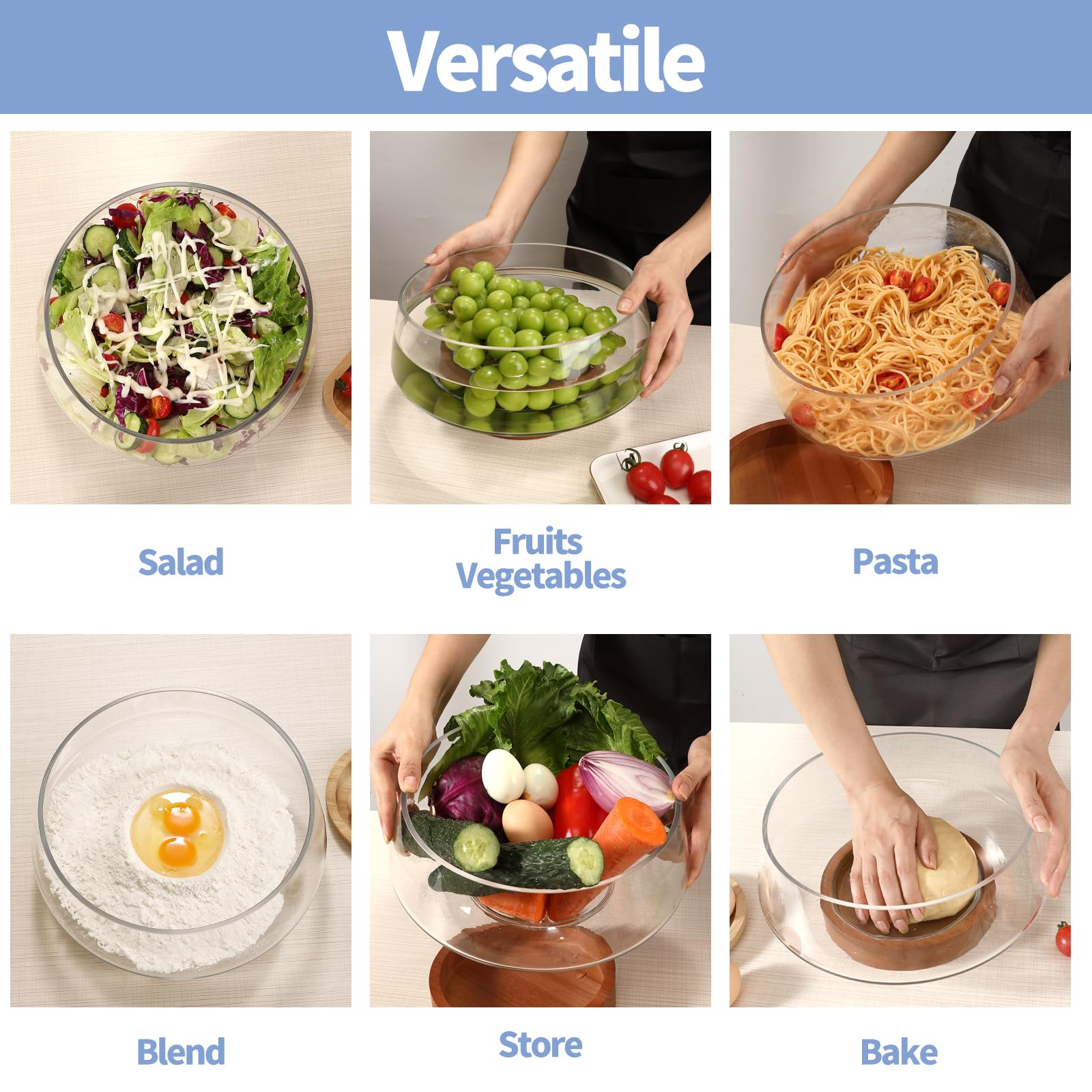- Stable Wood Base: The non-slip wood base provides stable support and prevents sliding. The natural grain and warm tones of the wood beautifully complement the glass bowl for kitchen, enhancing overall aesthetics