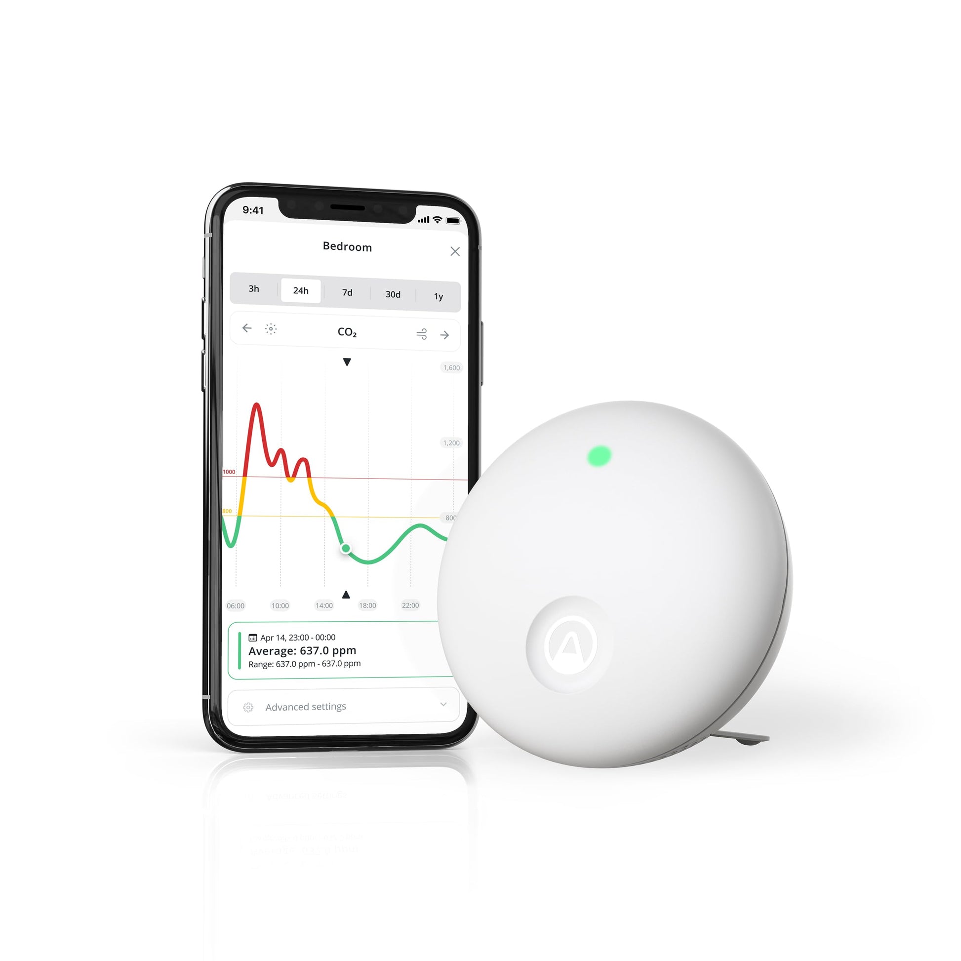 Details: Airthings Wave Enhance is a compact, discreet, battery-operated monitor that tracks carbon dioxide (CO2), airborne chemicals (VOCs), humidity, temperature and air pressure. Healthy levels of CO2 in the air help you to be at your best by promoting restful sleep and the ability to stay focused and perform. And because it also tracks ambient light and noise levels, it’s an especially smart choice for bedrooms and home offices. Forget about power cables, it runs on batteries (and they’re included!). Check all your air quality information in the Airthings app which synchronizes with the monitor via Bluetooth.