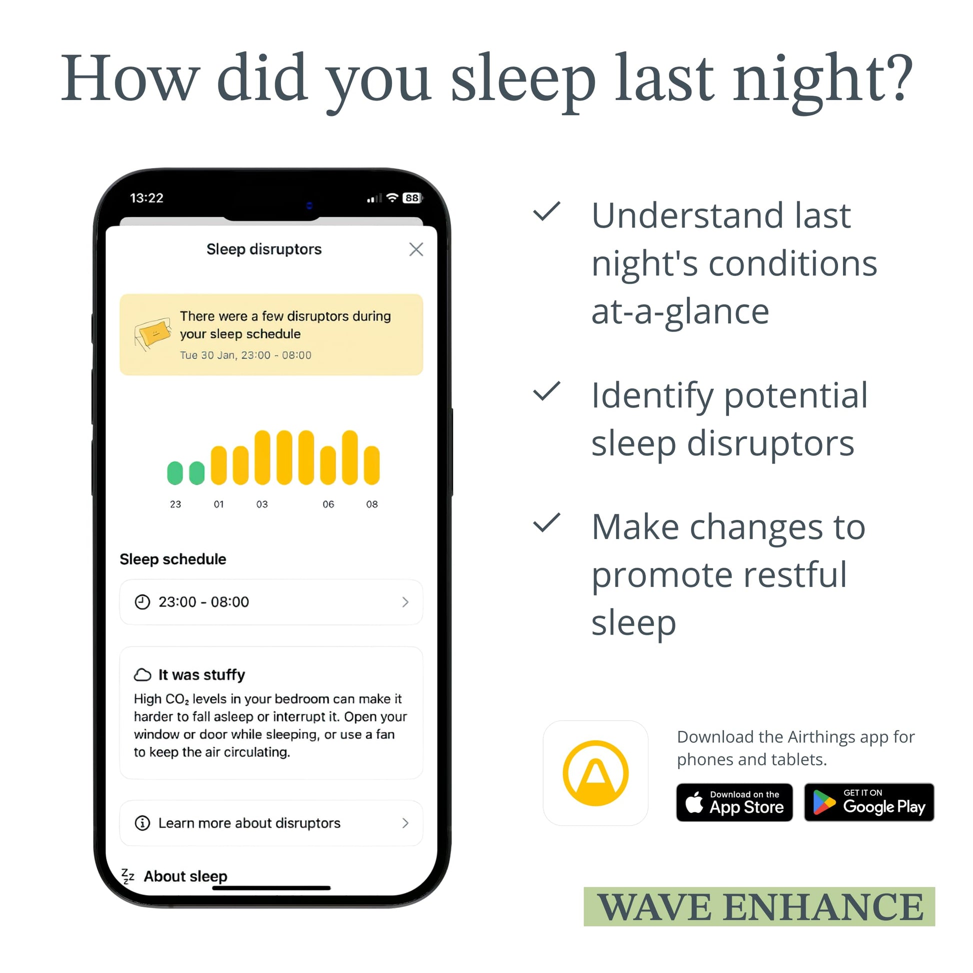 Airthings 322 Wave Enhance -Indoor Air Quality Monitor for CO2, VOC, Humidity, Temp, Pressure plus Noise & Light Sensors - Monitors Conditions for Sleep in Bedrooms & for Concentration in Home Offices