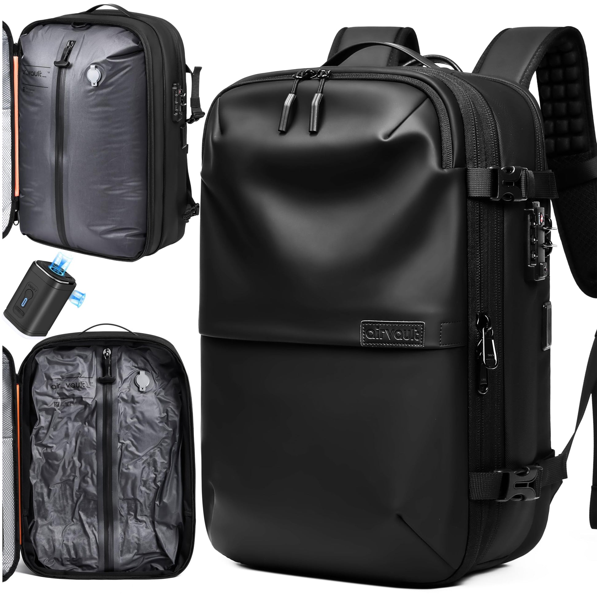 - 【Revolutionary Vacuum Compression Technology】 The AirVault backpack features an integrated vacuum compression system with a built-in air pump, capable of storing 18-20 spring garments and reducing storage space by over 50% (even more for down jackets). When fully expanded, the backpack achieves an impressive 60L capacity, comparable to a 24-inch suitcase.