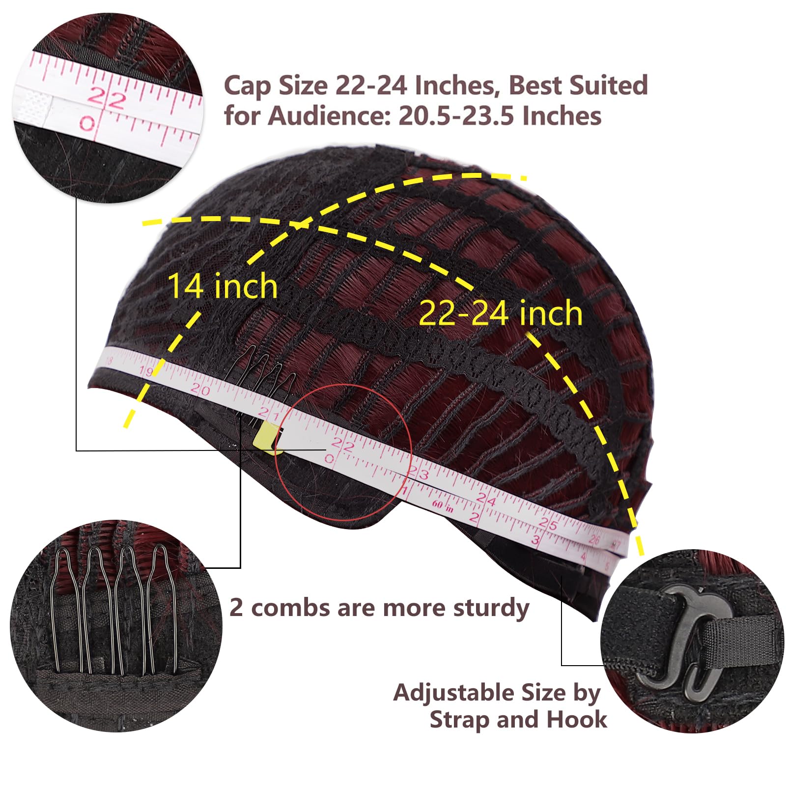 - 【Wig Cap Structure】Circumference 22-24 Inches, Two Adjustment Straps Can be Linked to a Fixed Position to Fit Different Head Sizes.We recommend the best wearing head circumference of 21.5''-23.5''