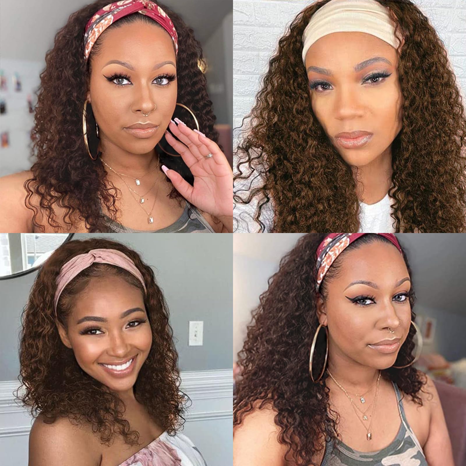 Aiterina Headband Wig Human Hair Headband Wig Deep Wave Human Hair Wigs for Black Women Glueless Human Hair Wigs Machine Made 150% Density No Lace Deep Headband Wig Chocolate Brown 12 inch