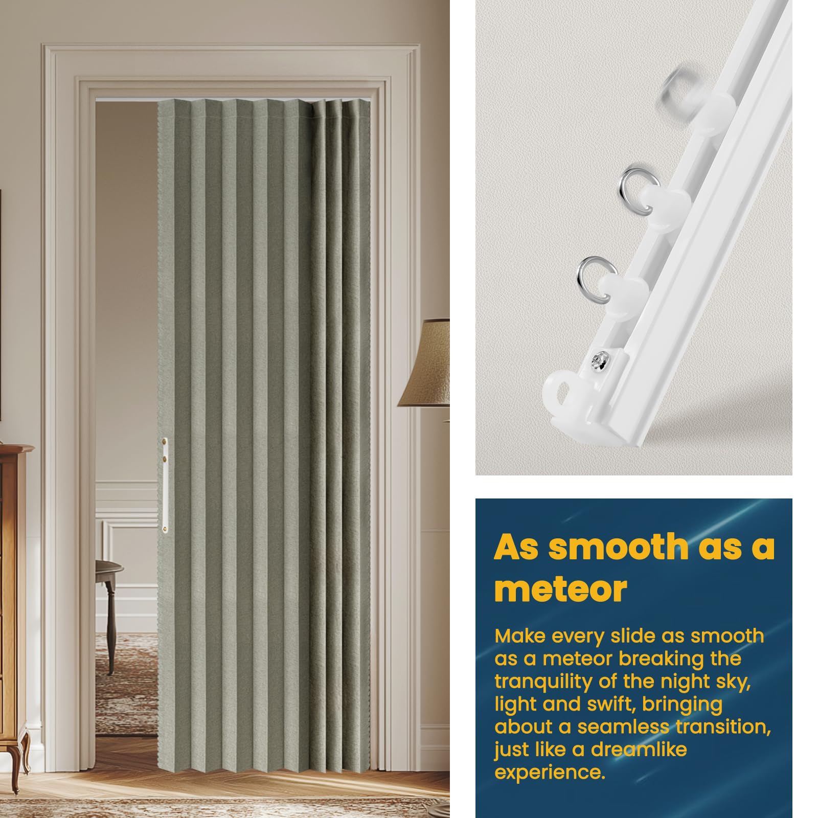- Accordion Pleat Hidden Design: This accordion-style curtain can be folded away when not in use, occupying almost no space and without affecting the interior aesthetics. Its hidden design keeps your home environment looking neater and more coordinated.