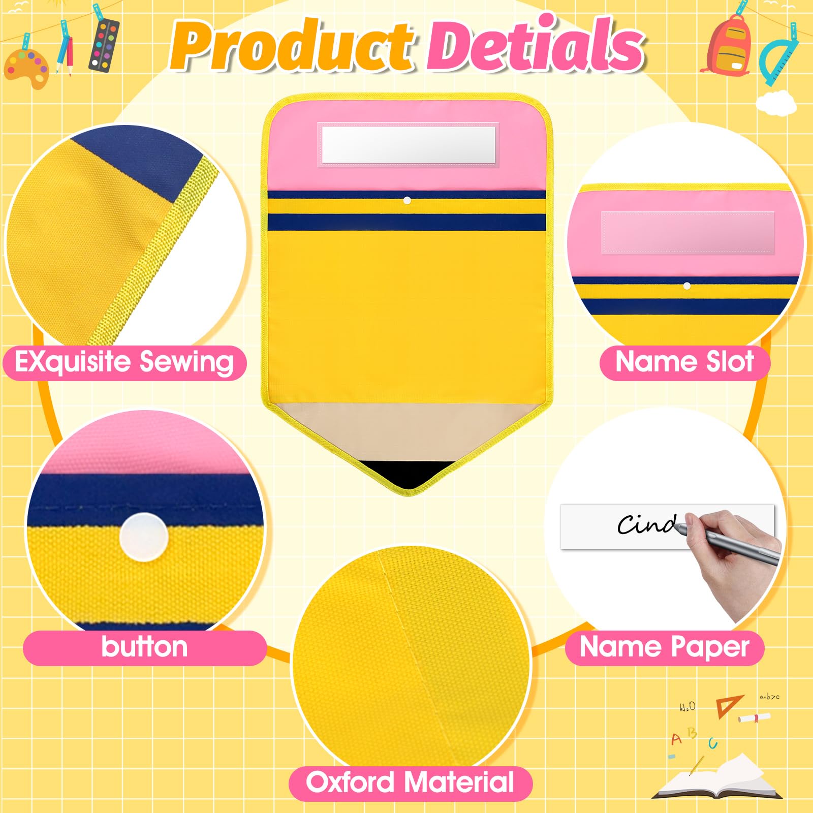 - Premium Oxford Material: Our pencil style classroom chair pocket is made of high quality oxford cloth with good wear resistance and moisture resistance, washable and does not tear easily, and long service life, meeting with daily need of classroom.