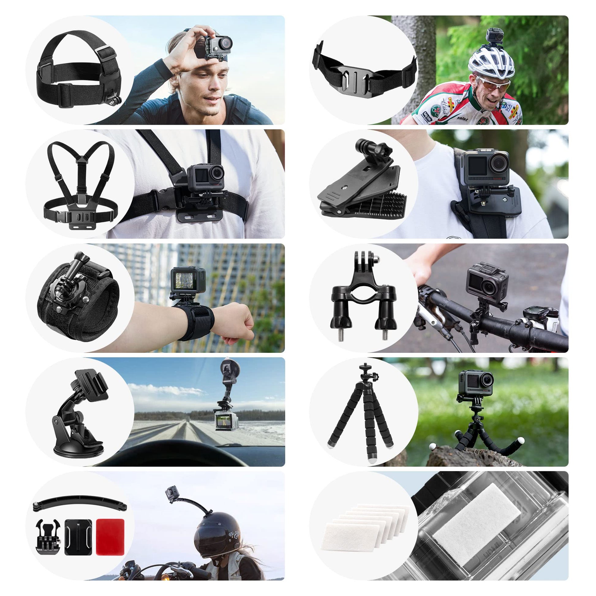 - Head Strap & Chest Strap: Easy to capture immersive video and photos using the first person perspective. Capture wonderful video and photo footage when you are riding. Fully adjustable to fit a wide range of body types, stably capturing hands-free footage with sports cameras.