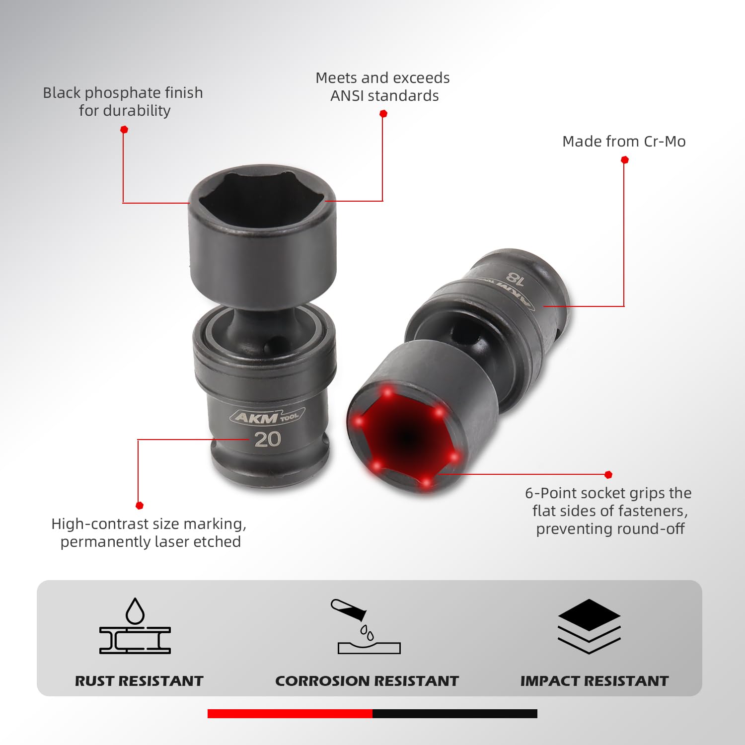 - 6-POINT DESIGN: The 6-point lateral drive design prevents the sockets from rounding due to high torque output, ensuring they maintain their integrity without deformation. Meets or exceeds ANSI performance standards.