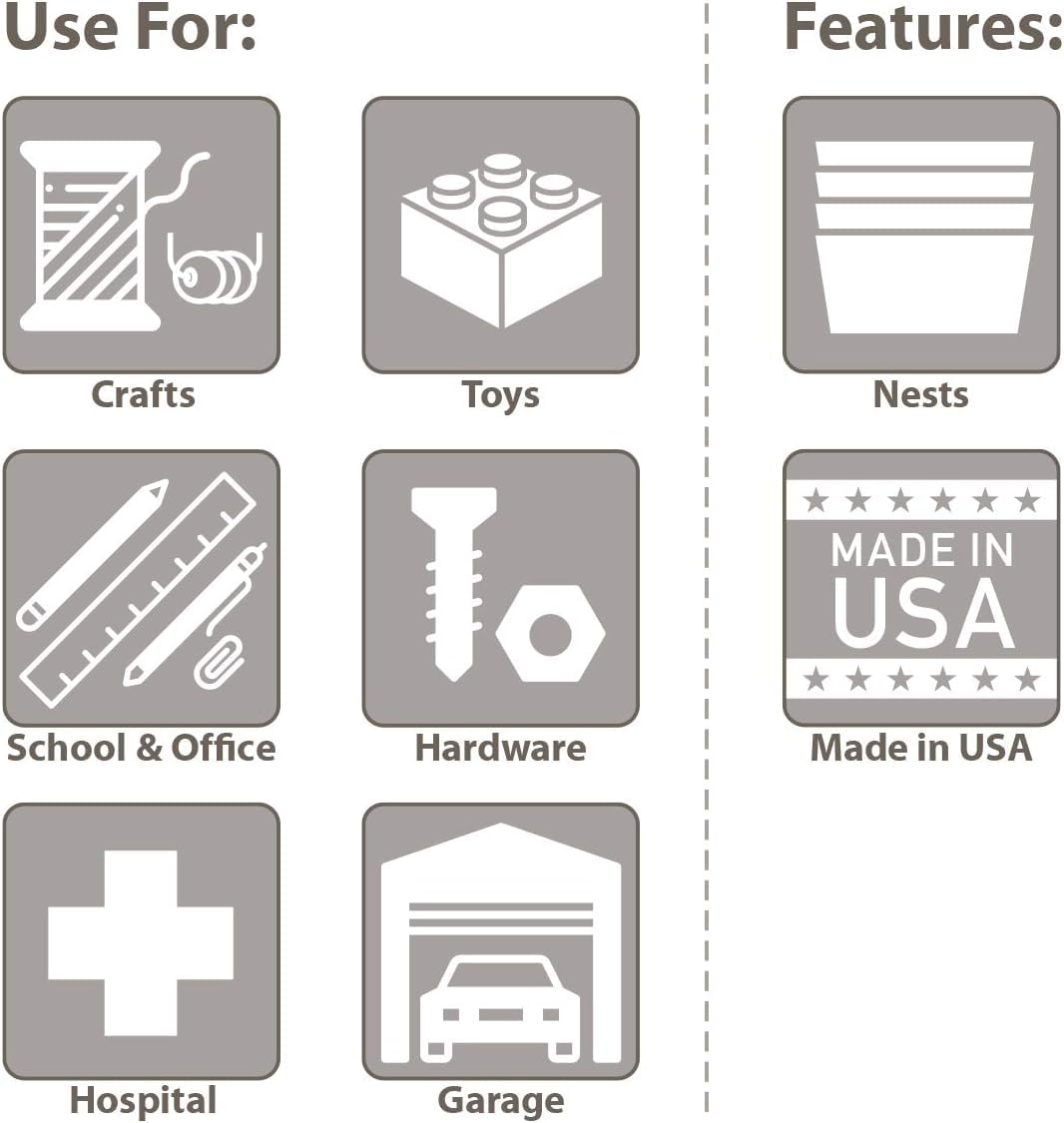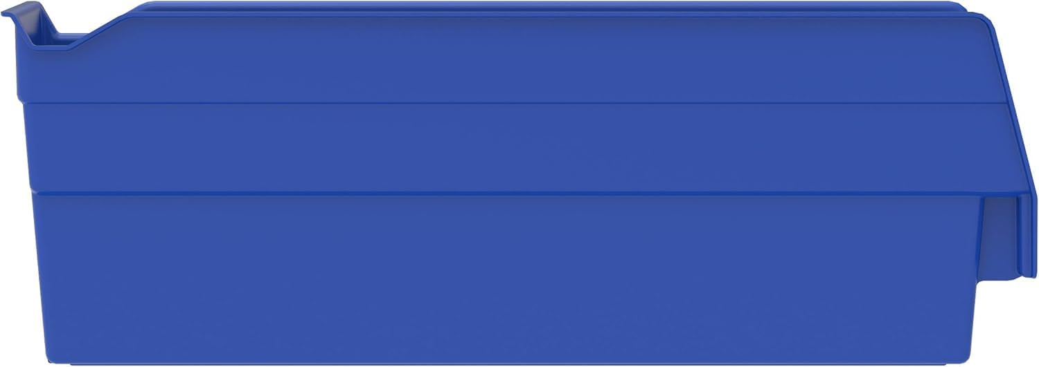 Details: Stay organized with Akro-Mils Shelf Bins, the versatile, durable solution for every space. Made from industrial-grade polymers, these heavy-duty storage containers are a long-lasting alternative to weak cardboard options. Waterproof, easy-to-clean, and built to withstand indoor and outdoor use, they’re perfect for garages, kitchens, offices, closets, under sinks, or in cabinets. Designed for spill-free retrieval, their unique lip allows effortless tilting forward for easy access to tools, supplies, or household items. Customize your storage with optional dividers, bin cups, and label holders (sold separately) and choose from a variety of colors for an organized and efficient system. Great for a wide range of uses, including, bathroom cabinet storage, kitchen organization, office organization, closet organization, tool storage, and office storage. With a curved-bottom hopper front and space-saving nesting, these bins fit 12", 18", or 24" deep shelves and vertical storage units. Note: these shelf bins are NOT stackable. Proudly made in the USA, Akro-Mils Shelf Bins combine strength, convenience, and adaptability for all your organization needs.