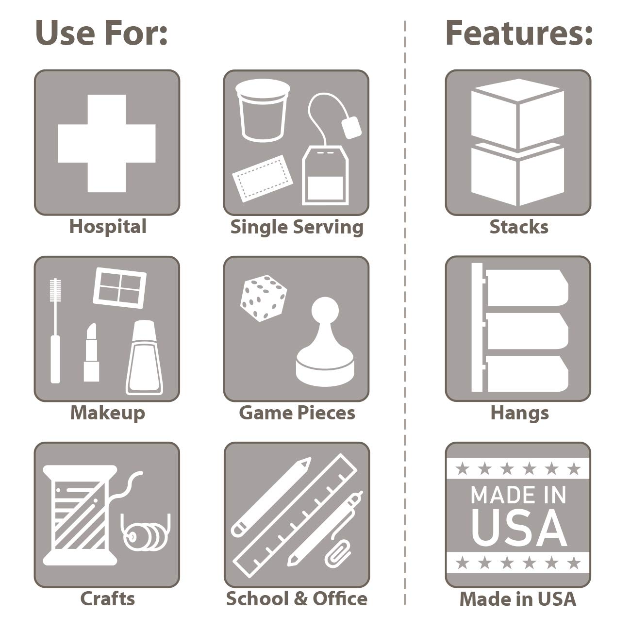 - GREAT FOR– Organizing home office areas, walk in closets, hospital exam rooms, dental and medical supplies, nail and hair salons. Perfect for kitchen pantry cupboards storing single servings of creamers, tea bags, powdered drink mixes, salad dressing packets. Bathroom storage - makeup and hair accessories, nail polish, clippers, etc. Closet storage - clothing accessories, scarves, and socks