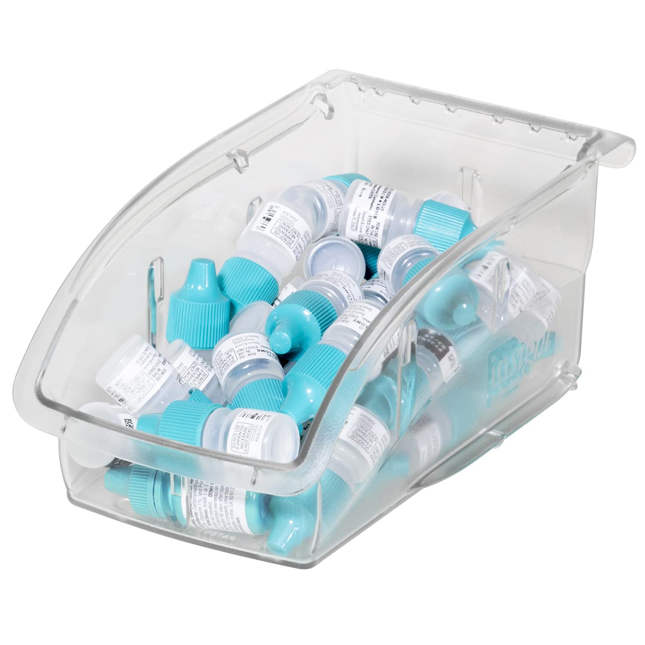 Details: With a smooth, contoured, streamlined design, Akro-Mils InSight Ultra-Clear Bins are the durable, modern storage solution. InSight Ultra-Clear Bins provide maximum visibility along with a sleek attractive design. Clear hang and stack bins are constructed of super-tough polycarbonate which resists cracks and chips, and bins are autoclavable for use in medical applications. Clear plastic storage bins may be stacked inside cabinets or in closets to organize contents. Hang bins on Akro-Mils louvered panels or rails to free up work desk or shelf space. May fit in desk drawers (check height of drawer first).