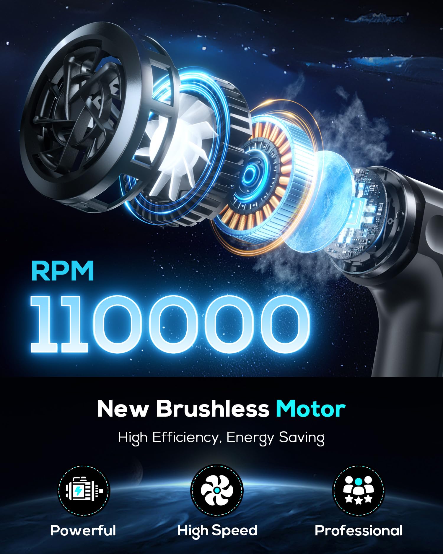 AKSILM Compressed Air Duster-Stepless Adjustable 110,000RPM Electric Cleaner for Keyboard, PC Cleaning, Rechargeable Cordless Jet Dry Blower Replace Canned Air Compressed Air Cans - Blue