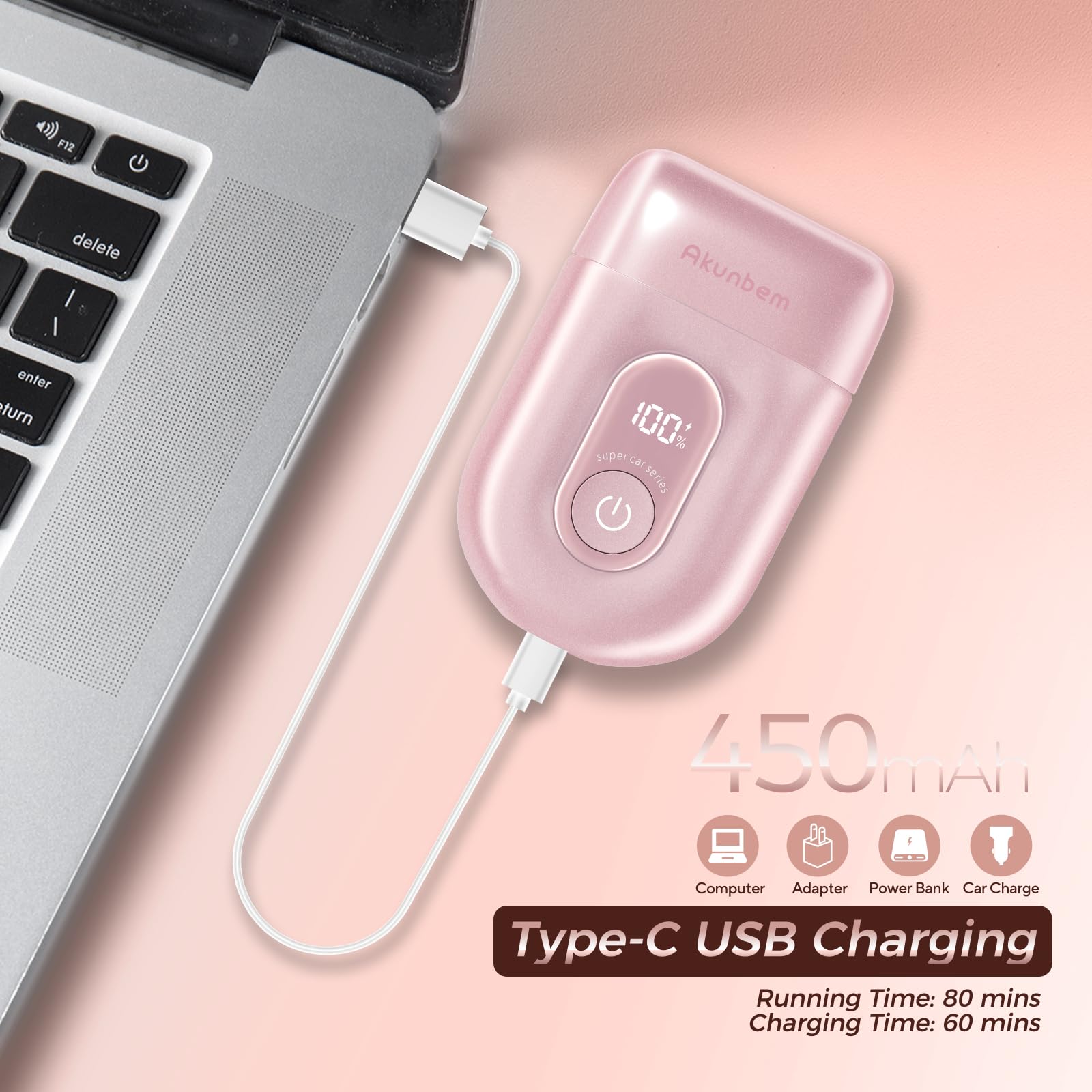 Akunbem Electric Razor for Women - Mini Bikini Trimmer - Shaver for Pubic, Legs, Arm & Body - Painless Hair Removal Device - Cordless Wet & Dry Use