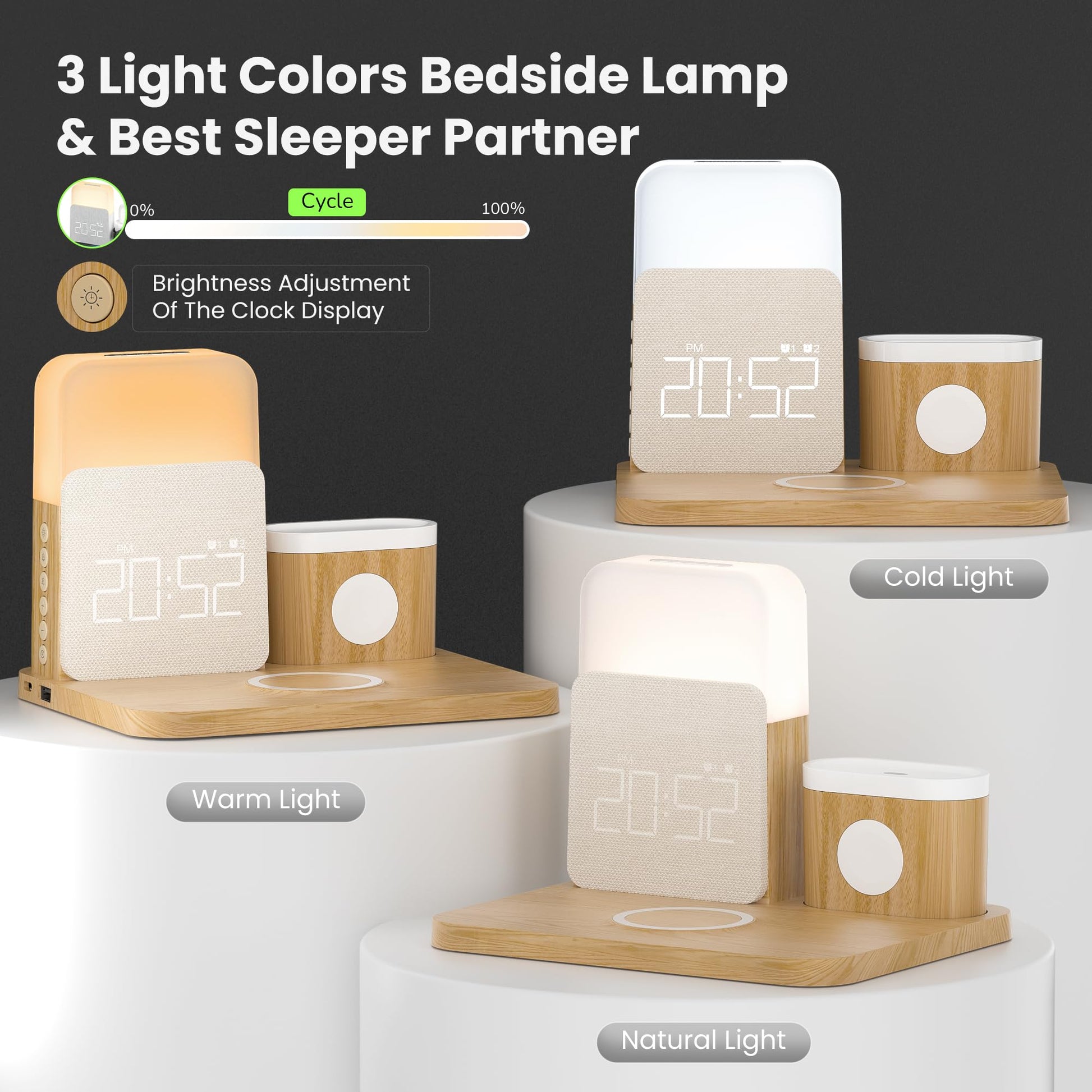 - Dimmer Bedside Alarm Clock:Digital display alarm clock and adjustable night light,digital display clock has an alarm function.The night light is equipped with three different colors:warm light,natural light,and cold light,which can be adjusted