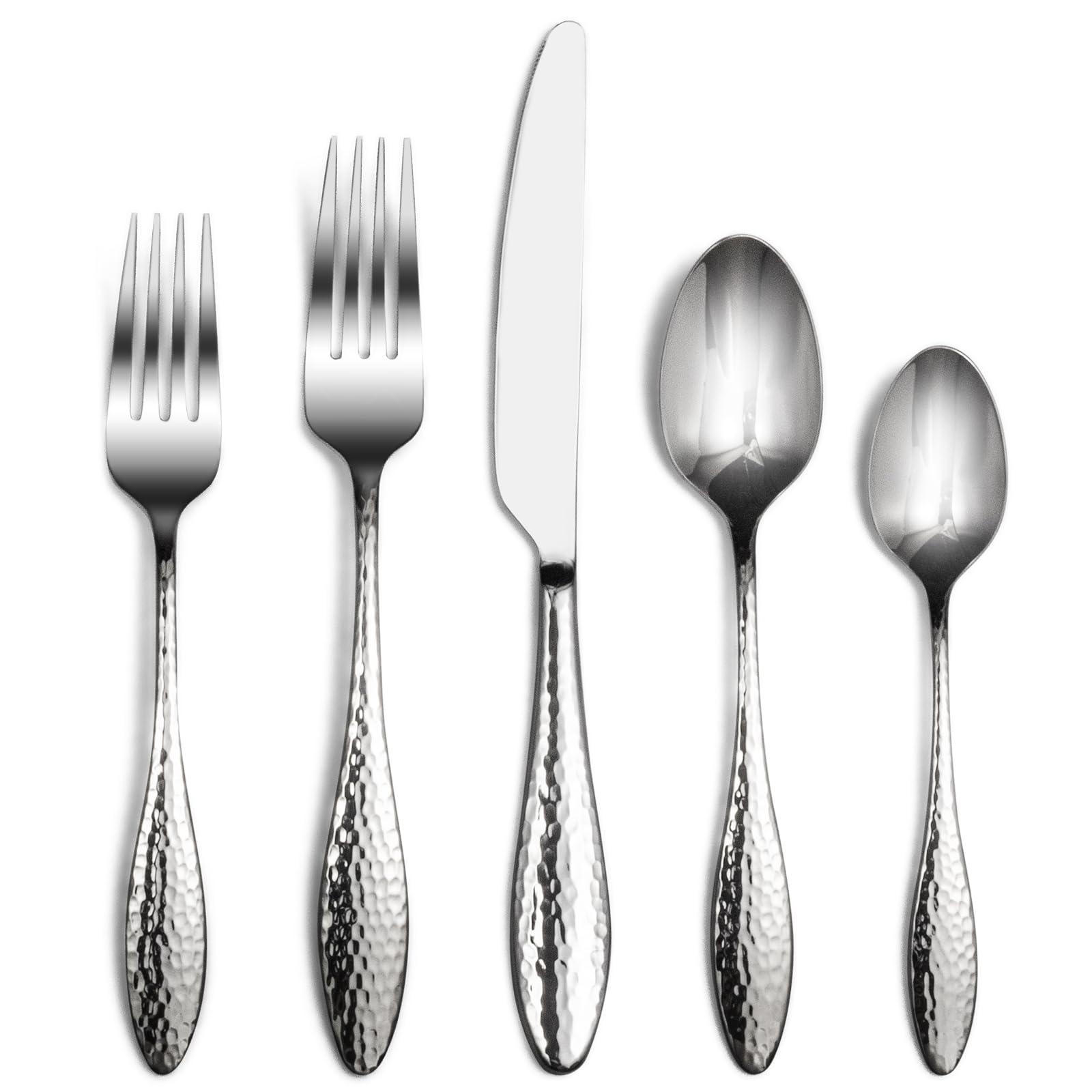 - Hammered Patterns: The handles of this spoon and fork silverware set have a beautiful hammer pattern, which is hand-hammered by artisans. The unique irregular pattern will bring you a different dining experience