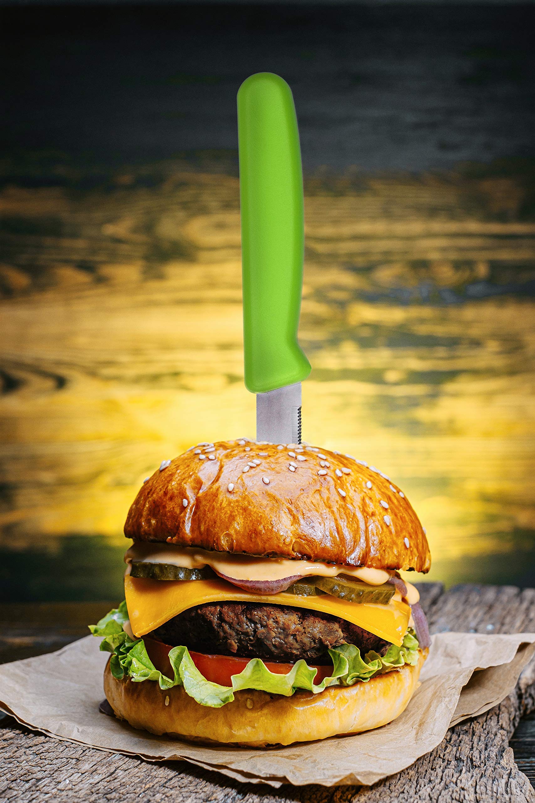 Alfi All-Purpose Knives Aerospace Precision Pointed Tip - Home And Kitchen Supplies - Serrated Steak Knives Set | Made in USA (Multi-Color, 12 pack)
