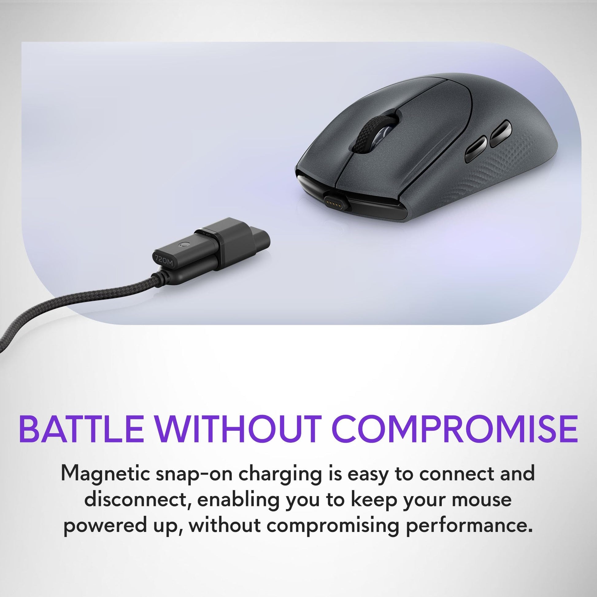 - Battle Without Compromise: Magnetic snap-on charging is easy to connect and disconnect, enabling you to keep your mouse powered up, without compromising performance.