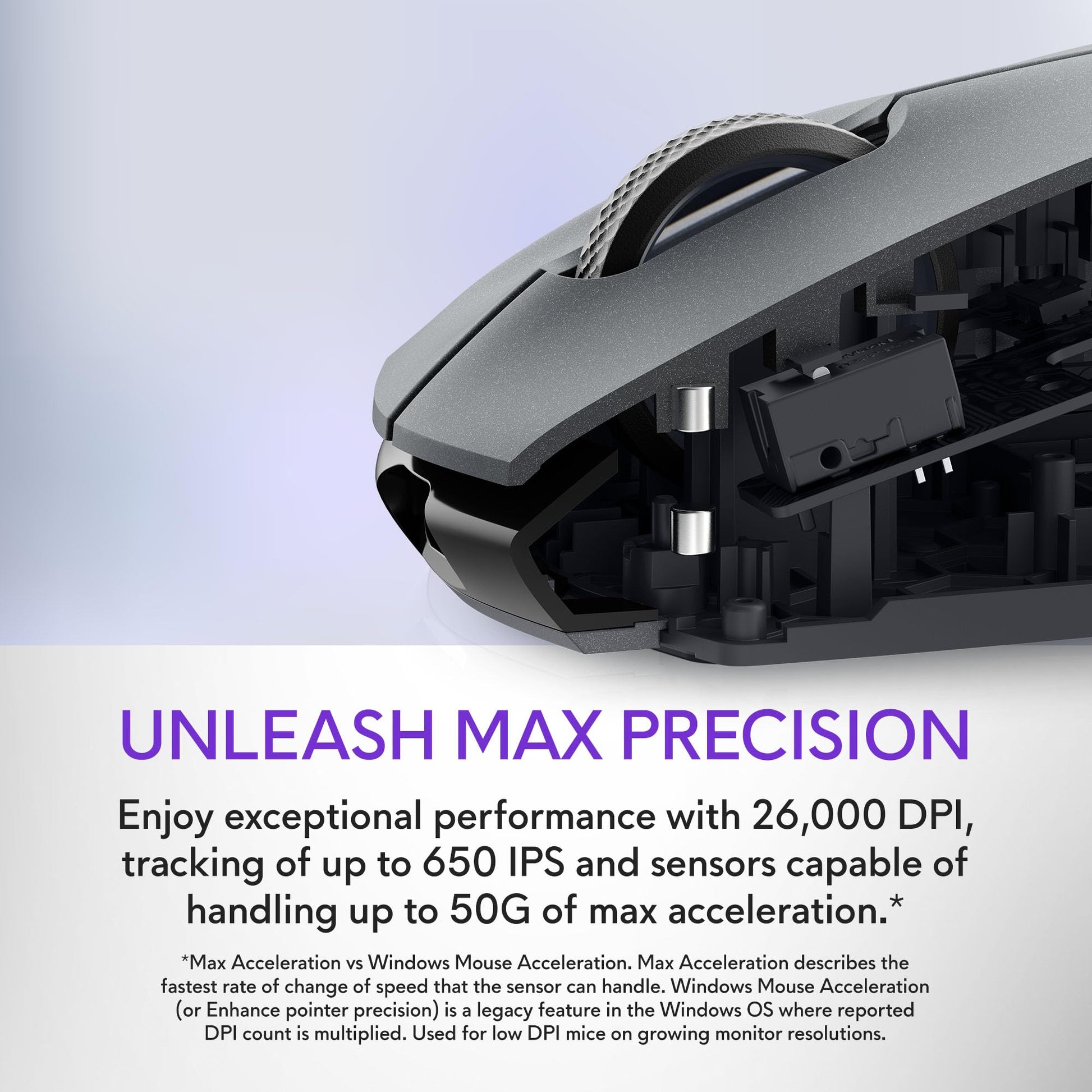 - Unleash max precision: Enjoy exceptional performance with 26,000 DPI, tracking of up to 650 IPS and sensors capable of handling up to 50G of max acceleration.