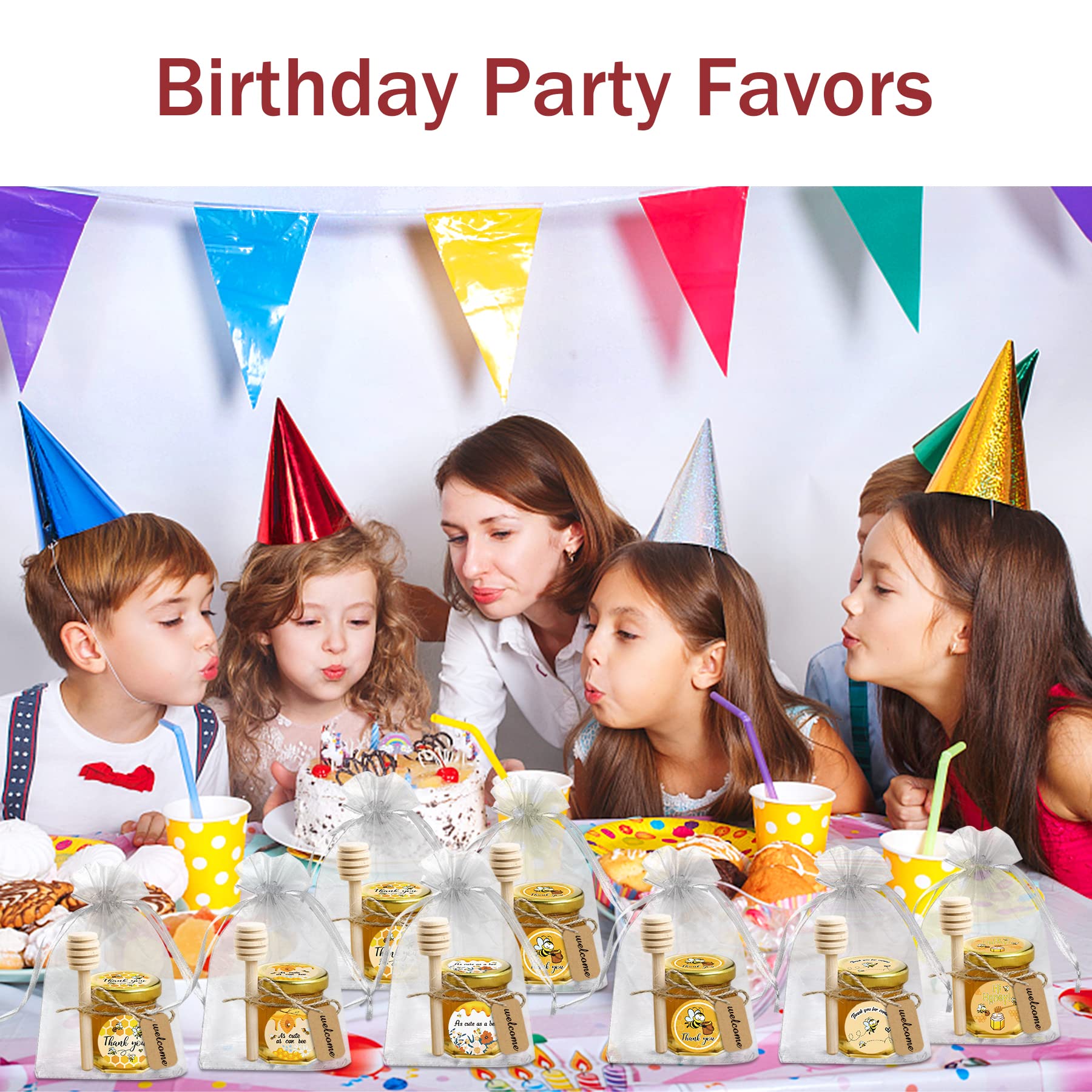 - Elegant Small Honey Jars for Party Favors: Like golden drops of sunshine, our mini honey jars with dippers become sweet keepsakes for weddings, baby showers, and more. The 1.5 oz glass honey jars with lids add a charming touch to heartfelt celebrations.