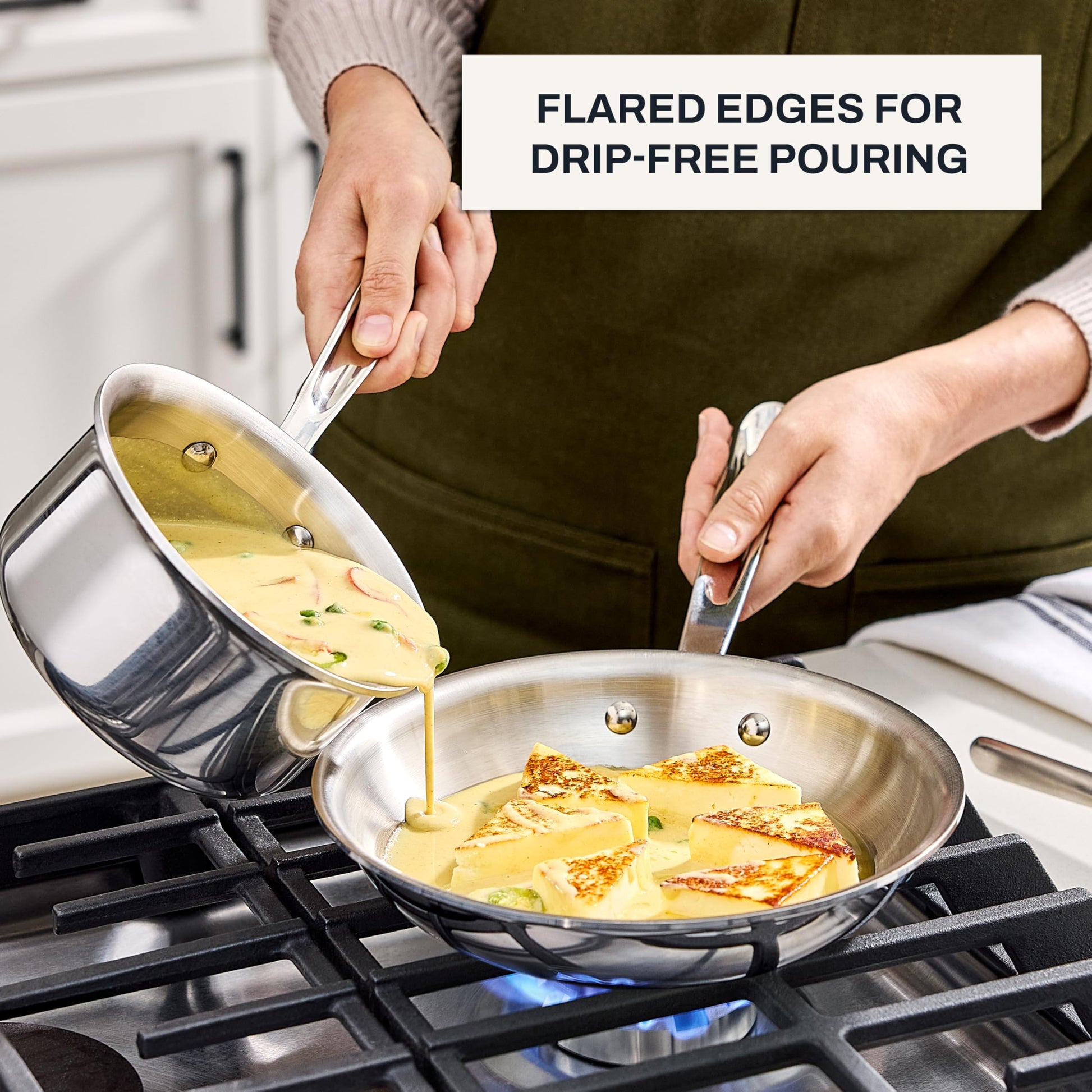 - Classic tri-ply construction, made with a responsive aluminum core bonded together with 2 layers of durable, stainless steel all the way around for maximum durability and fast, even heat distribution