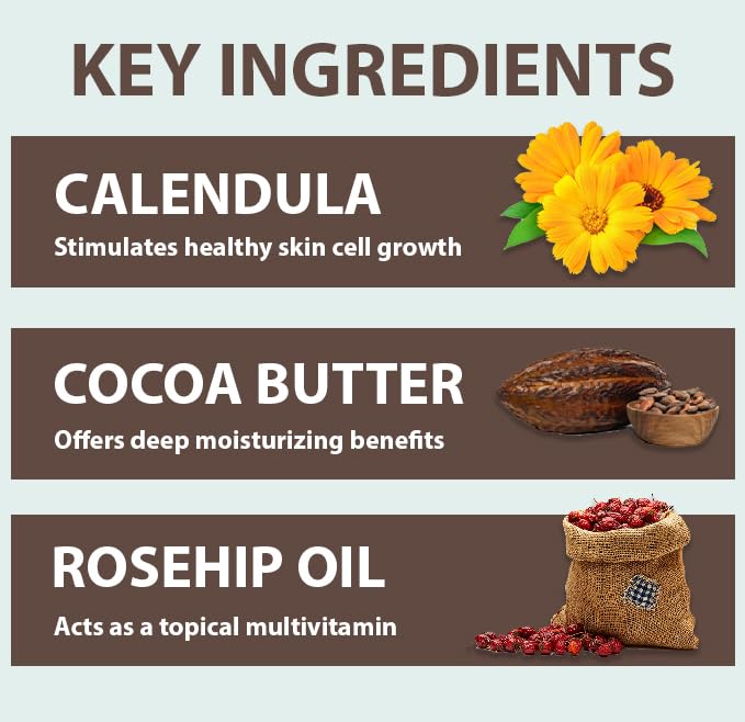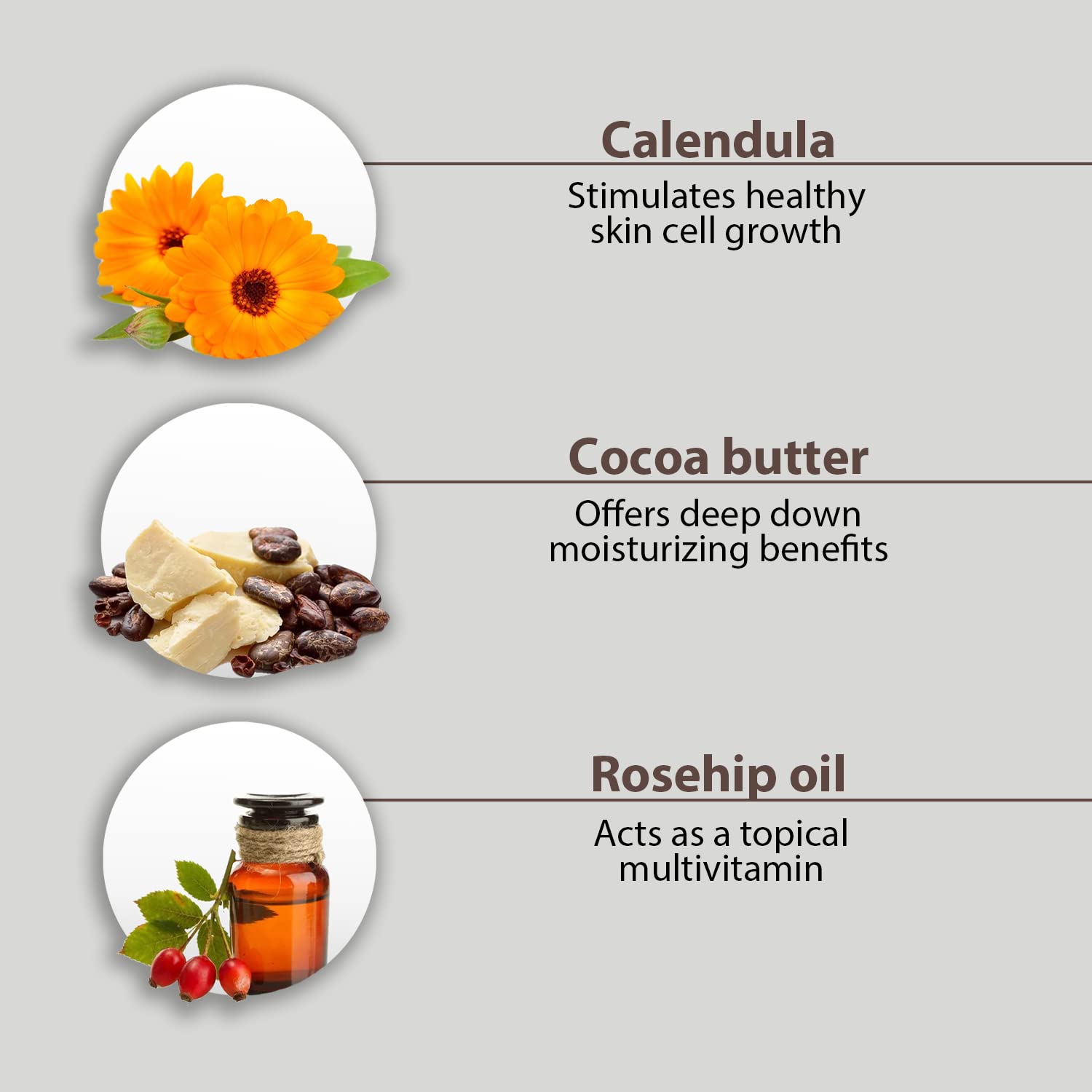 - BOTANICAL INGREDIENTS: We’ve made sure to pick top-quality botanical ingredients to create this nourishing moisturizer. The combination of Calendula, Arnica & Rosehip oil creates a soothing feeling and can help in healing damaged skin. Cocoa butter helps in making this moisturizing cream glide right onto your skin, absorb easily, and instantly make your skin feel silky and smooth.