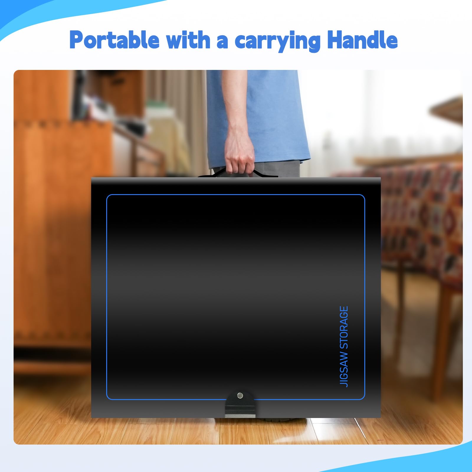 - Seamless Portability for Puzzle Enthusiasts: This portable puzzle storage folder, crafted with mobility in mind, is a game-changer for jigsaw enthusiasts. The handle ensures you can carry your entire collection with ease, transforming how puzzles are transported. Ideal for cozy home corners, outdoor settings, or travel, our storage folder maintains your puzzles' integrity, ready for use at any moment. It's a perfect blend of a puzzle box stand and a portable bag, offering unrivaled convenience.