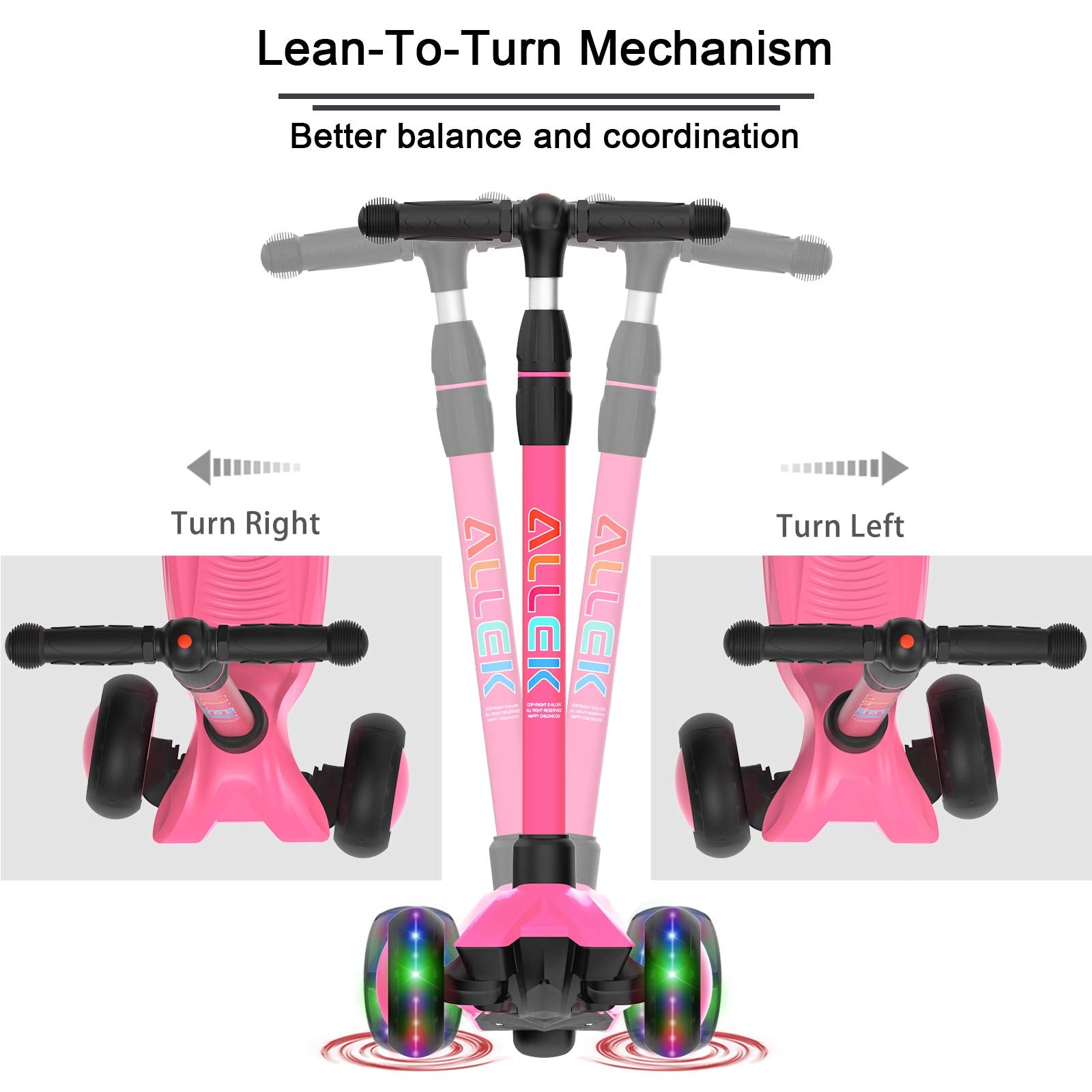 Allek Kick Scooter B03, Lean 'N Glide 3-Wheeled Push Scooter with Extra Wide PU Light-Up Wheels, Any Height Adjustable Handlebar and Strong Thick Deck for Children from 3-12yrs (Rose Pink)